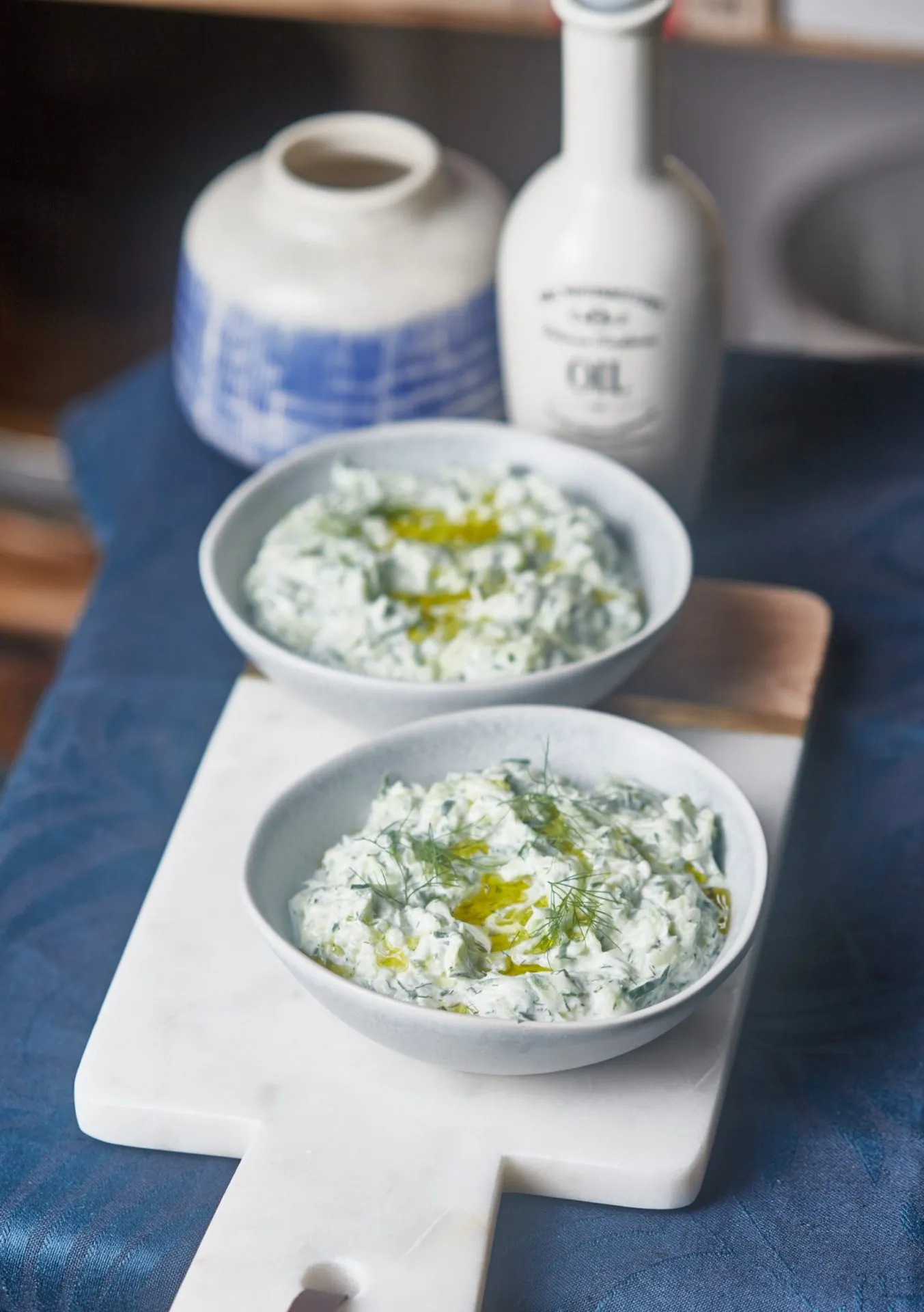 Ez a görög uborkasali, ami legalább annyira híres, mint a görög gyros. Egyes helyeken mentával, kaporral, én mindkettővel csinálom, és persze jó sok fokhagymával!