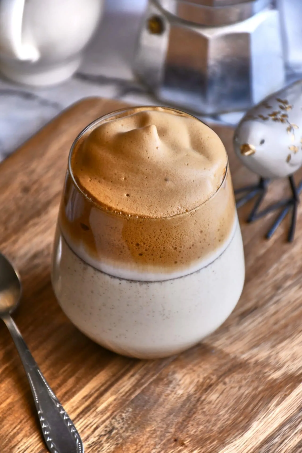 A kávéhabhoz a 3 összetevőt egy magasabb falú edénybe rakjuk, és habverővel vagy kávéhabosítóval stabil habbá verjük. A tejet összemelegítjük a fűszerekkel, és egy nagyobb bögrébe töltjük, erre pedig rákanalazzuk a kávékrémet.