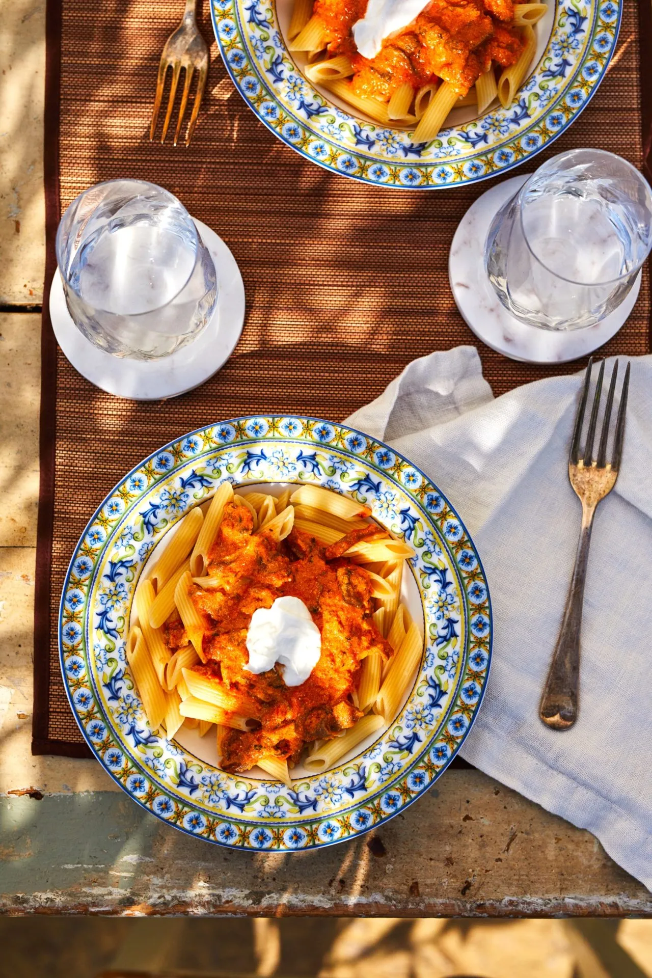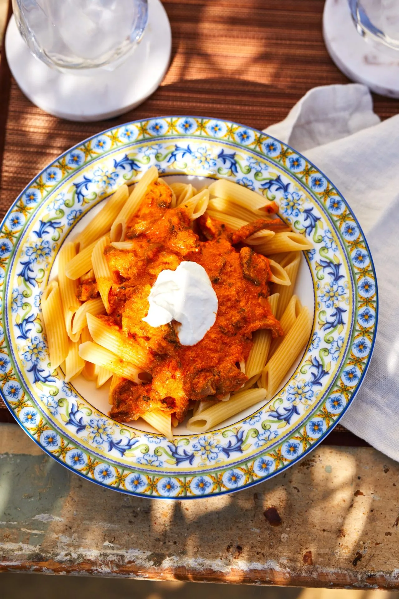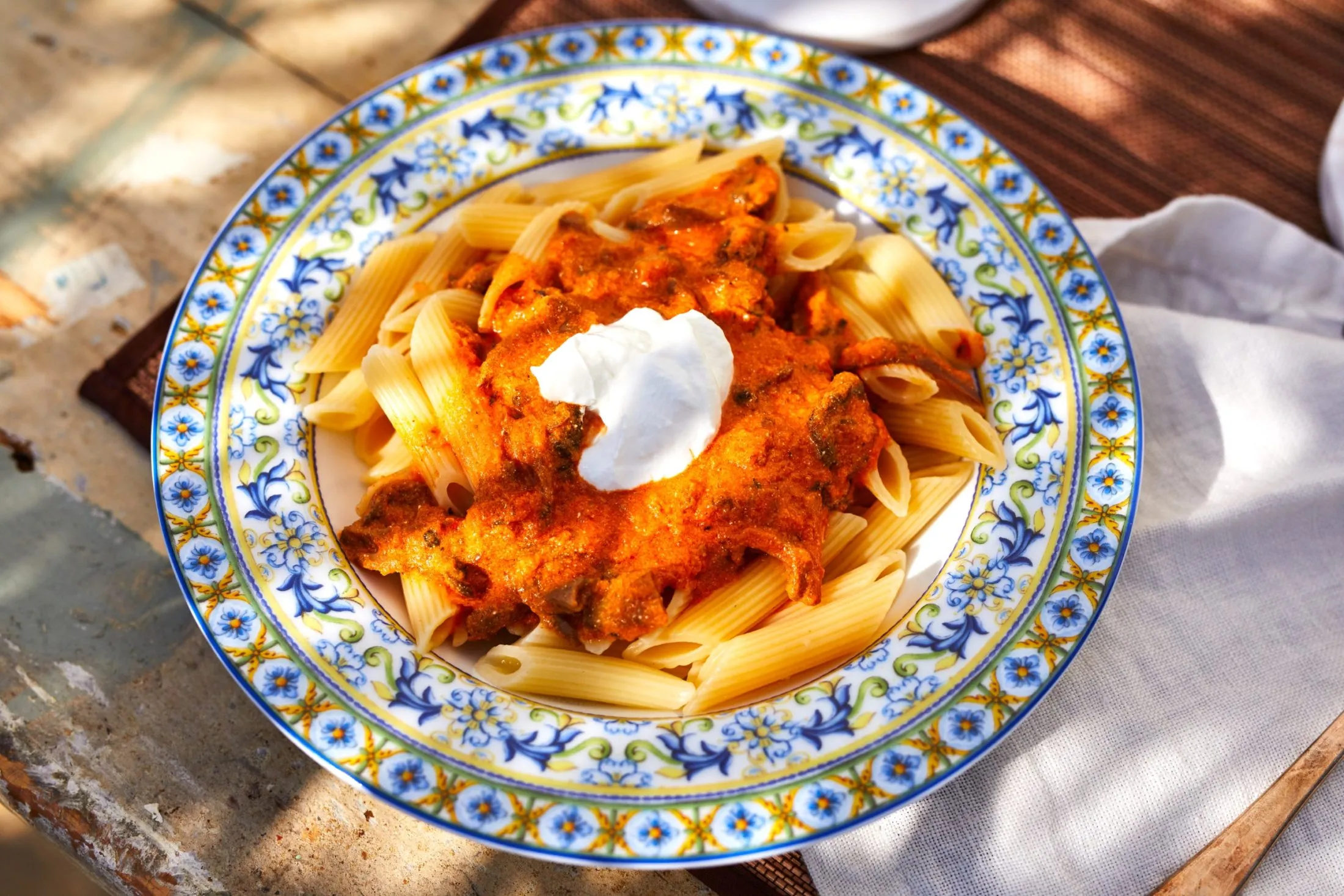 Átmentek anyucihoz, vagy a nagymamához és ahogy beléptek, a frissen gőzölgő gombapaprikás illata csap meg, amihez már csak egy jó kis nokedli kell - ismerős a kép? Hát, most nem ez fog történni. Ez a bezárkózott ember gombapaprikása, ami szuper egyszerű, köretnek pedig tökéletes lesz a tészta - igazából bármelyik típus a felhalmozott 2 tonna tésztából, de nálunk ezúttal pennére esett a választás. Tipp: Ha esetleg fagyasztott gombátok van üveges helyett, ne essetek pánikba, azzal is tökéletesen működik a dolog.