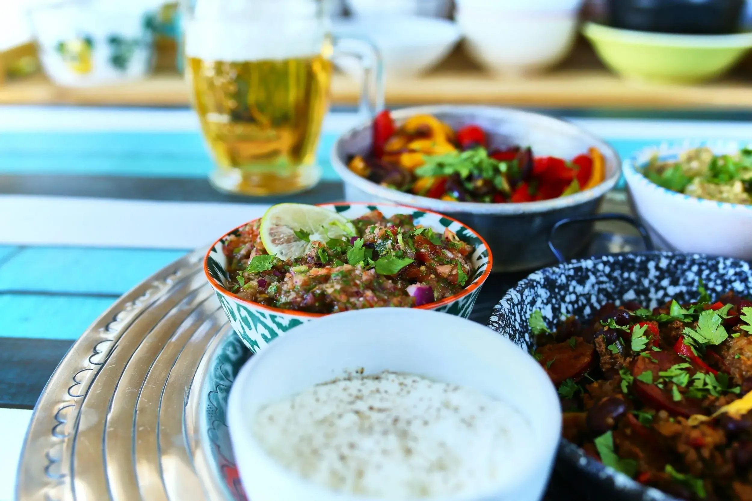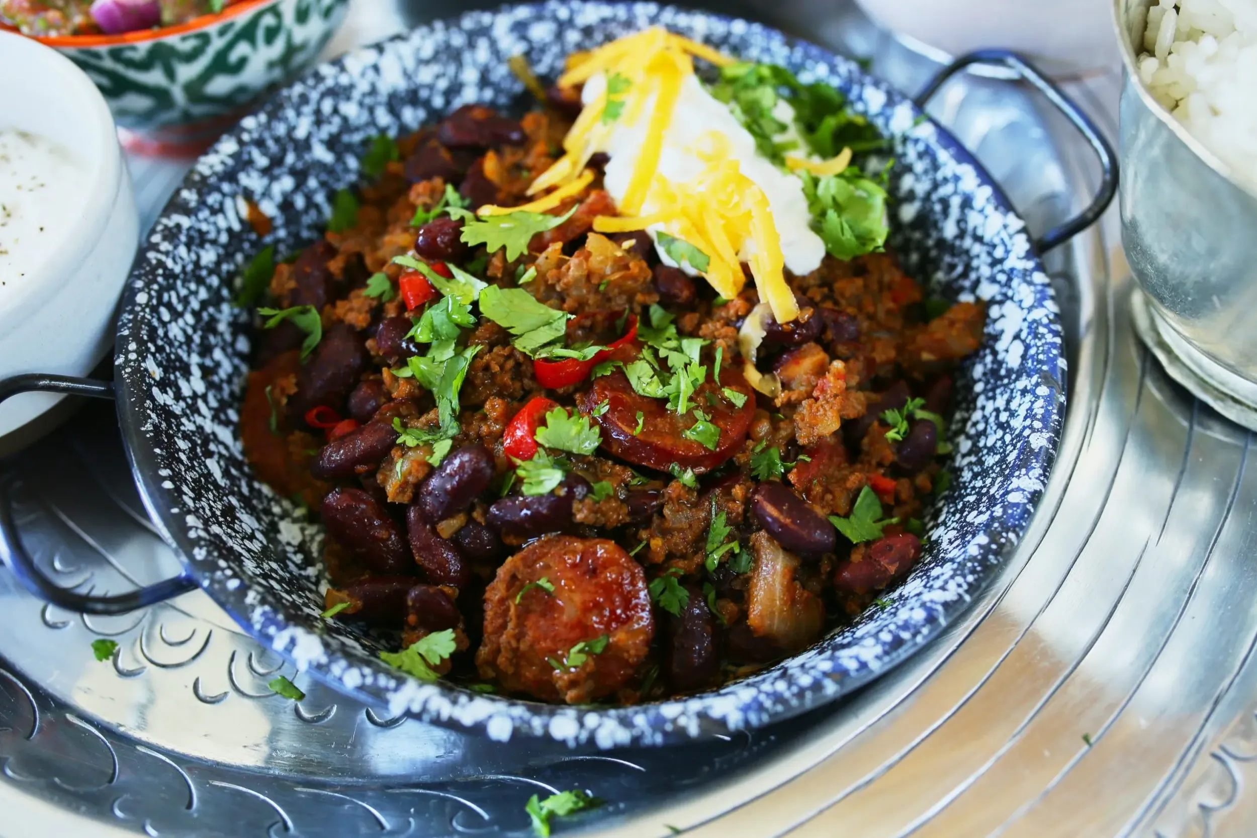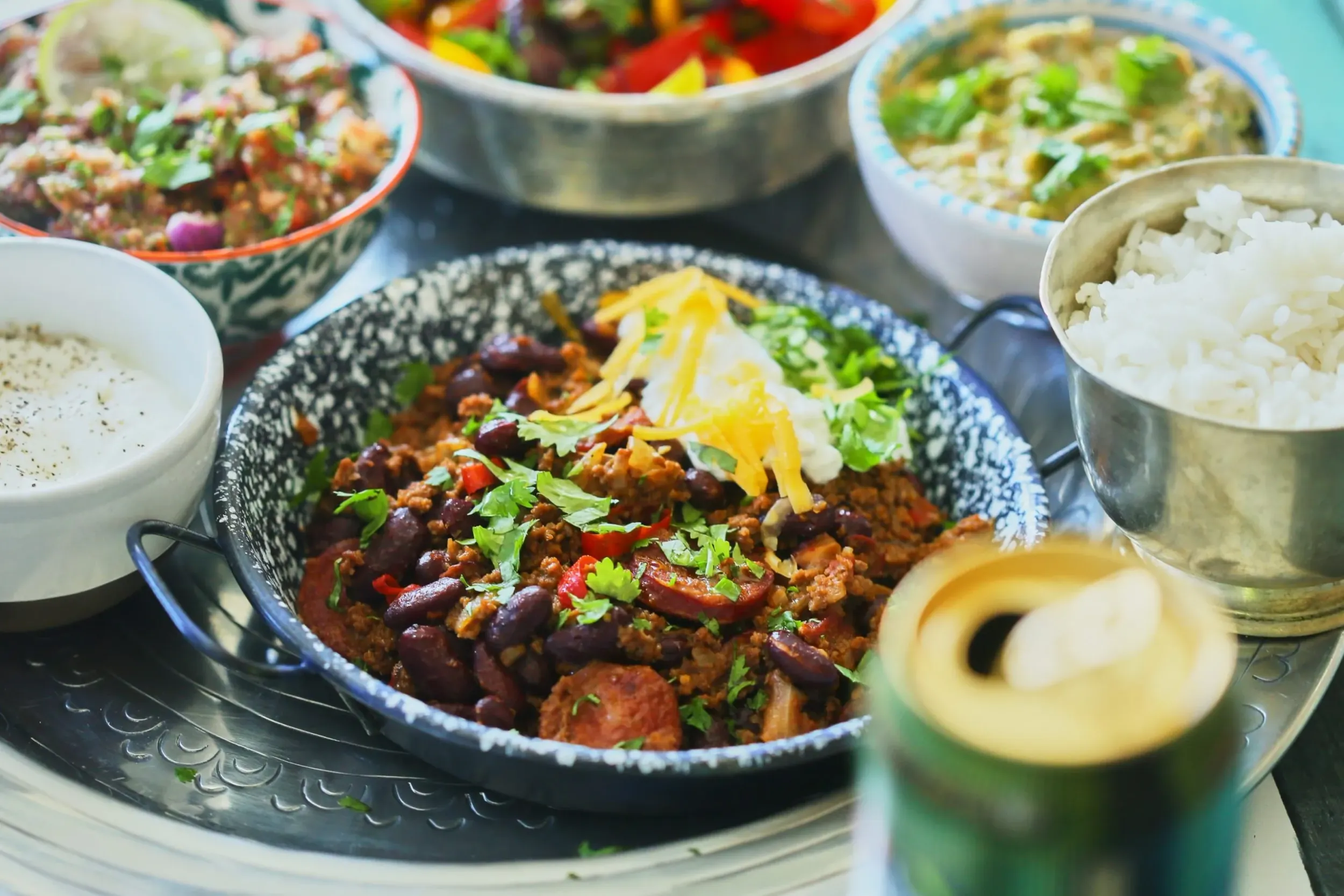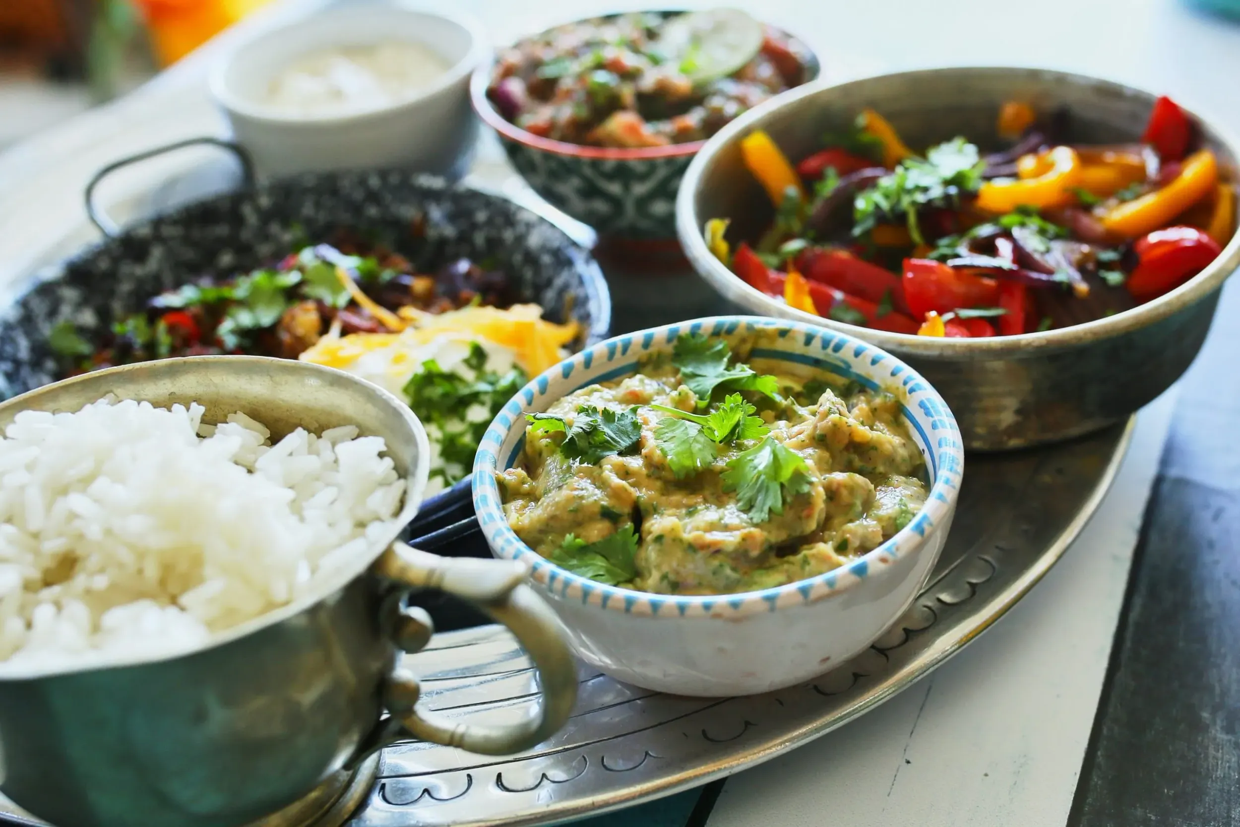 A rizst elkészítjük a korábban tanult módon és ha minden összeállt, akkor jöhet a tálalás. Egy doboz tejfölben elkeverünk egy gerezd lezúzott fokhagymát, majd szépen összerakjuk a tálat: jöhet a marharagu, a salsa, a guacamole, a fokhagymás tejföl, a lepirított paprikák és persze egy kis frissen kifőtt rizs is.