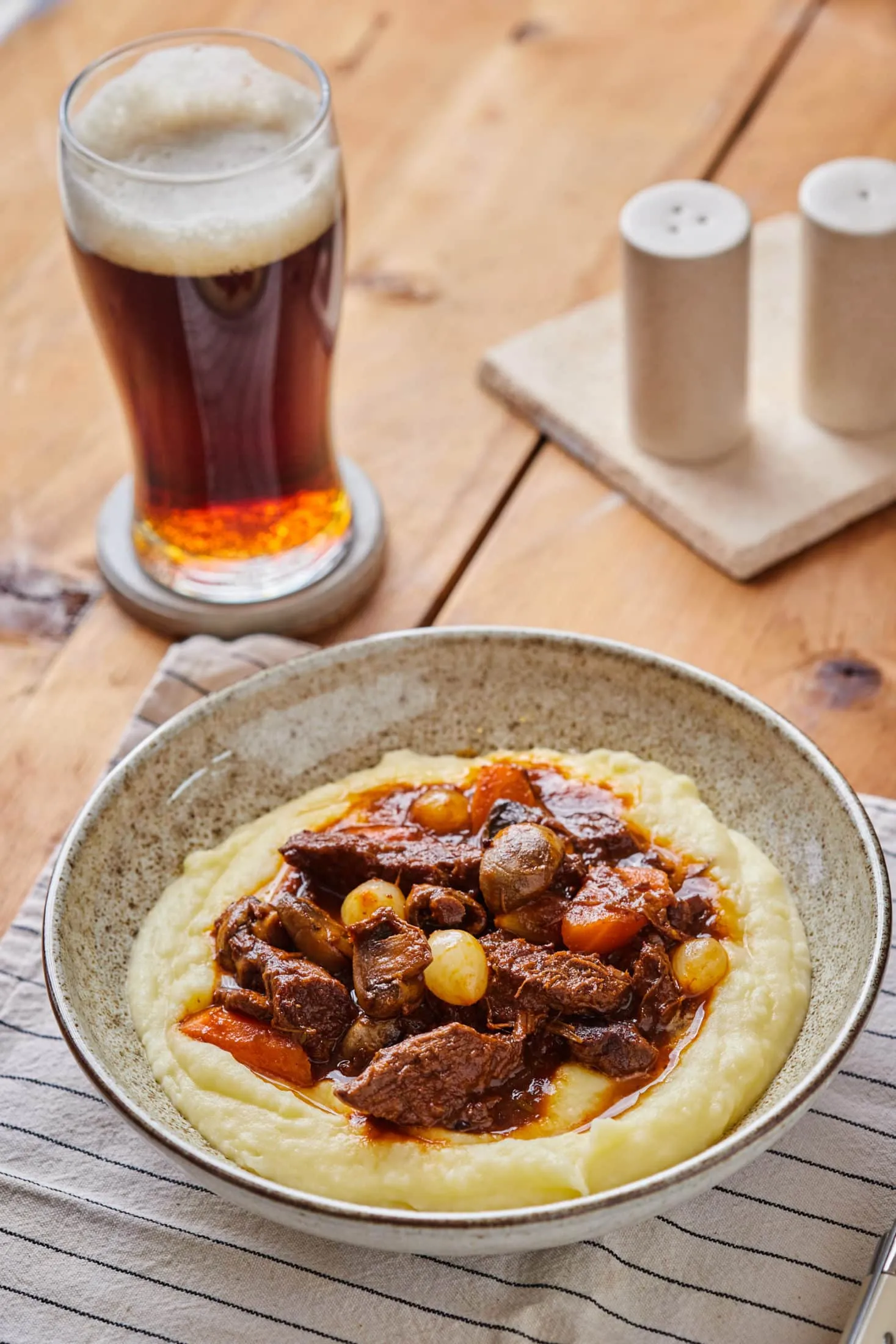 Ha letelt a főzési idő, levesszük a fedőt, és a vizet pótolva addig főzzük, amíg a hús szinte teljesen meg nem puhul. A főzés befejezte előtt kb. fél órával hozzáadjuk a nagyobb darabokra vágott répát. A gombát félbevágjuk, és egy száraz, forró serpenyőben barnulásig pirítjuk, majd a raguhoz keverjük. Amikor a répa is és a hús is megpuhult, hozzákeverjük a gyöngyhagymát és a Worcester szósszal tovább ízesítjük. Véleményem szerint krumplipürével a legtutibb, nektek is ezzel javaslom egy pohár világos porter sör társaságában.