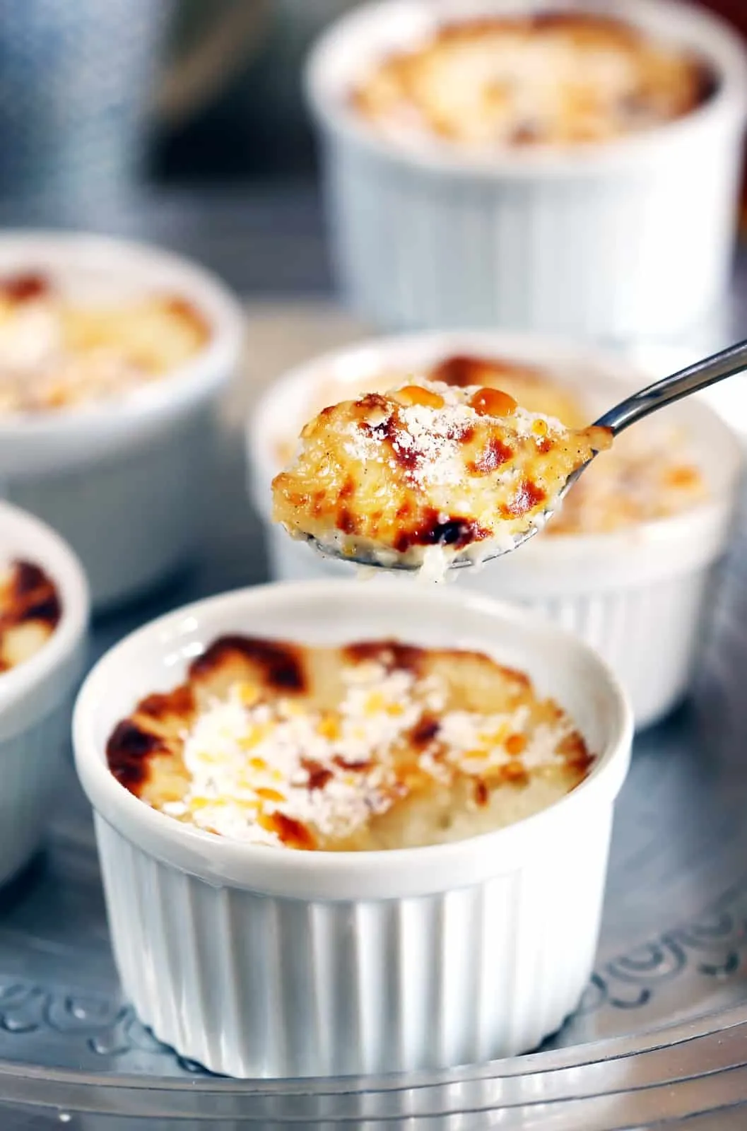 A rizst felöntjük a vízzel, megsózzuk, felforraljuk és alacsony lángon, lefedve, párszor átkeverve hagyjuk 20 percig párolódni. Mikor a rizs magába szívta a vizet, hozzákeverjük a vajat, felöntjük a tejjel, beleszórjuk a cukrot és beledobjuk a vanília kikapart magjait. Lefedve kb. 15 percig, továbbra is alacsony lángon hagyjuk pihenni. A keményítőt összekeverjük kevés tejjel, a tejberizs alaphoz öntjük, hagyjuk, hogy felforrjon, majd félrehúzzuk. A formákba adagoljuk a tejberizst és 160 fokos sütőbe toljuk 15-20 percre. Mikor elkészült, a tetejét megszórjuk porcukorral, vagy szakácsfáklyával karamellizáljuk őket, vagy visszatoljuk őket a sütőbe, grillfokozaton 200 fokra.