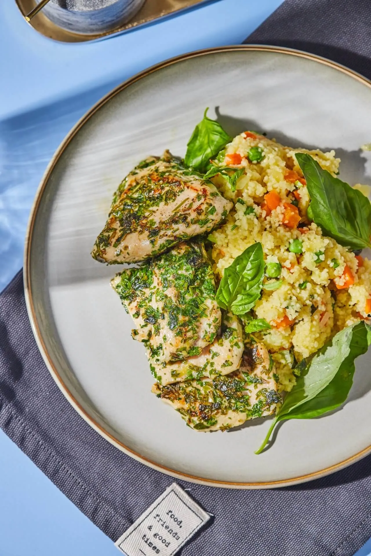A citromos csirke elkészítésének első lépéseként a húst kisujjnyi vastag szeletekre/medálokra vágjuk, sózzuk, borsozzuk, megszórjuk az aprított bazsalikommal és rozmaringgal, ráreszeljük a citrom héját, majd egy tapadásmentes serpenyőben kb. 4-5 perc alatt készre pirítjuk 1 evőkanálnyi olívaolajon.
