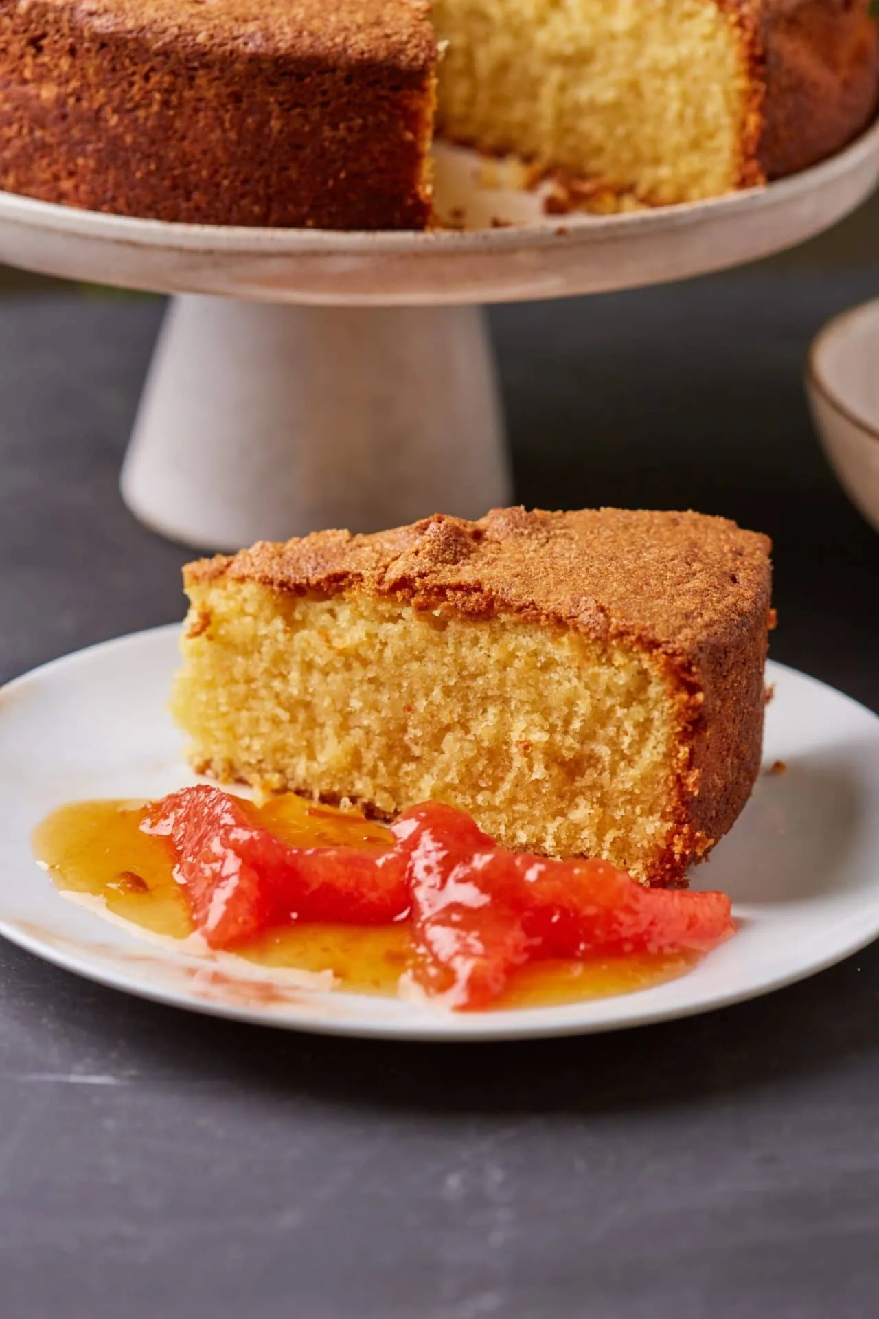 A szoba-hőmérsékletű puha vajat, a cukrot, 2 grapefruit reszelt héját és a vanília kikapart magjait egy robotgéppel kihabosítjuk. A mandulalisztet, a sütőport és a sót is hozzádolgozzuk. Folyamatos keverés mellett a tojásokat egyesével hozzádolgozzuk, de csak akkor tesszük bele a következőt, ha már az előzőt teljesen elkevertük. Jöhet bele 1 grapefruit leve, majd a polenta. A masszánkat egy 30 cm-es, tapadásmentes tortaformába tesszük, és 160 fokra előmelegített sütőben kb. 70-85 percig sütjük. Ha a teteje enyhén megnyomva már nem remegős, akkor kész.