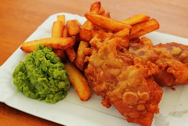 Tálalásnál pakoljatok a tányérra (vagy zsírpapír, papírtálca, hiszen ez egy street food kaja!) a frissen kisült, ropogós halat, mellé a sült krumplit és egy kanálka mentás zöldborsót. Angol módra kísérletezhettek még azzal, hogy a krumplira kevés ecetet locsoltok - elsőre fura, de nagyon kellemesen felfrissíti az ízét.Nektek milyen lett, hogy ízlett?