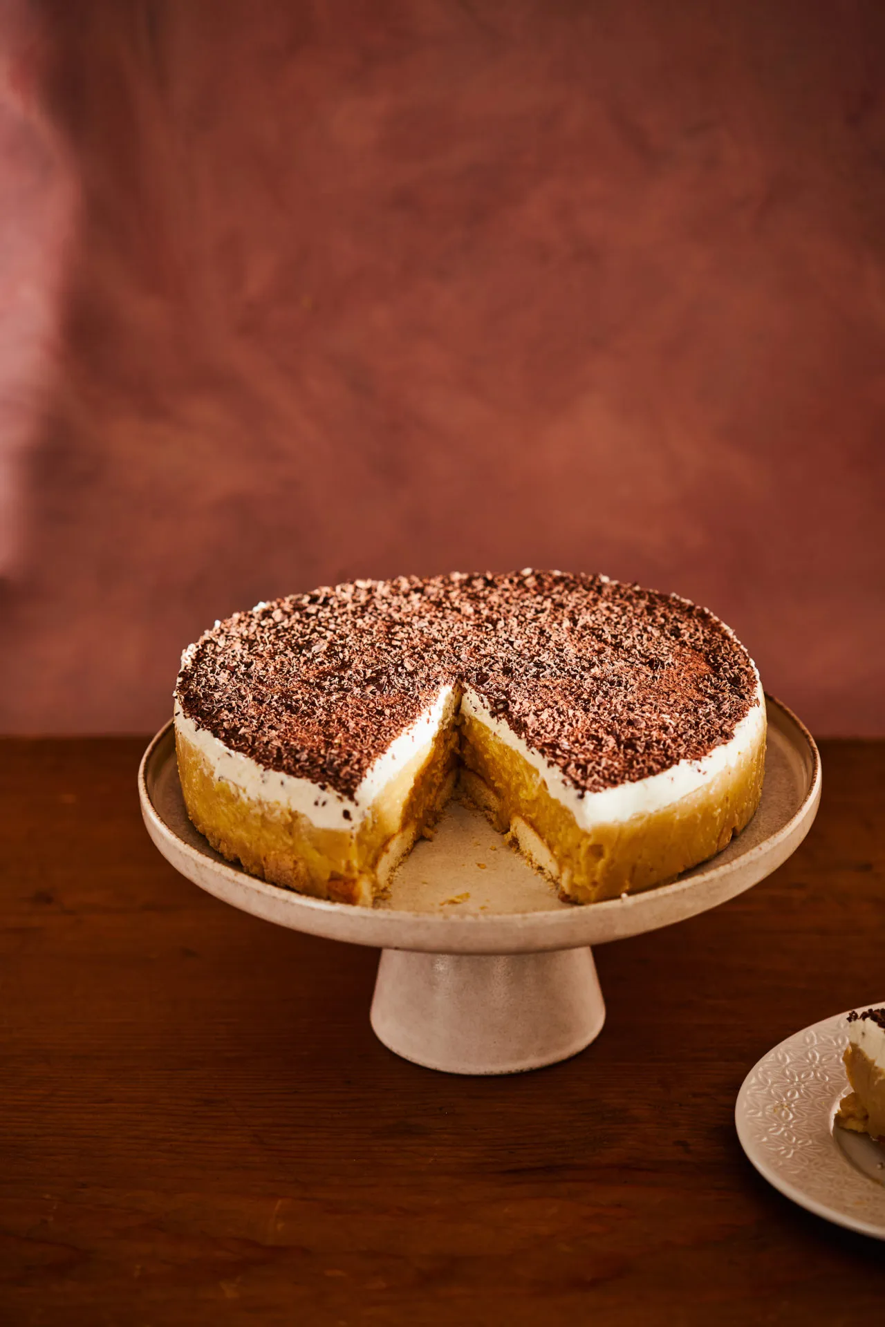 A babapiskótát a tortaforma aljára rakjuk, rákenjük az almás krémet, és hagyjuk teljesen kihűlni.