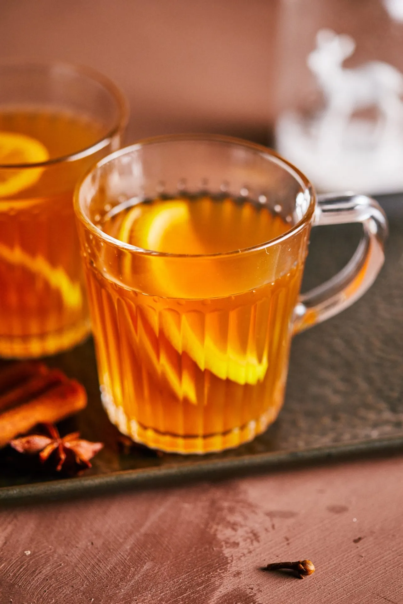 Egy lábasban karamellizáljuk a cukrot, hozzáöntünk egy kevés vizet, és ha újra feloldódott a visszakeményedett karamell, hozzáöntjük a többi vizet. Beledobjuk a 2 teafiltert, a kettévágott vaníliarudat, a gyömbért, a fahéjrudakat, a szegfűszeget, és felforraljuk a vizet. A filtert 4-5 perc múlva kivesszük, és alacsony lángon még 8-10 percig forraljuk a vizet a fűszerekkel. Elzárjuk a lángot. Az almákat meghámozzuk, kivágjuk a magházaikat, a narancsot és citromot jól megmossuk és szeletekre vágjuk őket. Felöntjük az alapot az almalével és a rummal, és beledobáljuk a gyümölcsöket. Szerintem másnapra érnek igazán össze az ízek, így akkor érdemes leszűrni, de persze azonnal is fogyasztható. :)