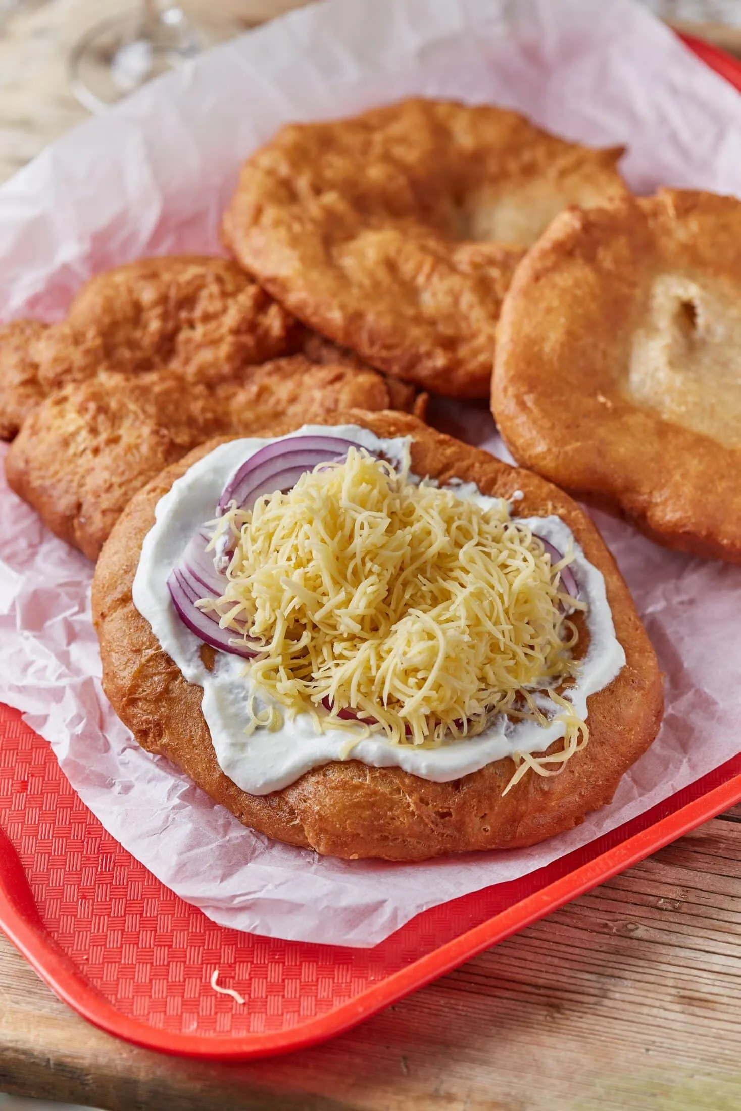 A joghurtos lángos esetében érdemes egy nappal a sütés előtt elkészíteni a tésztát, és hűtőben tárolni. Sütés előtt 1 órával kivesszük a hűtőből, és kigombócozva megkelesztjük. De ha aznap készítjük, akkor így csináljuk: a liszteket és a sót összekeverjük, a vízben felfuttatjuk a cukorral az élesztőt. A többi hozzávalóval is összekeverjük, alaposan kidagasztjuk, és kiolajozott edényben, lefedve hagyjuk legalább 1 órát állni. Ezután gombócokat formázunk belőle, tepsire rakjuk és hagyjuk fél órát letakarva kelni. Bő olajban kisütjük. Fokhagymás tejföllel, szeletelt lila hagymával és reszelt sajttal tálaljuk.