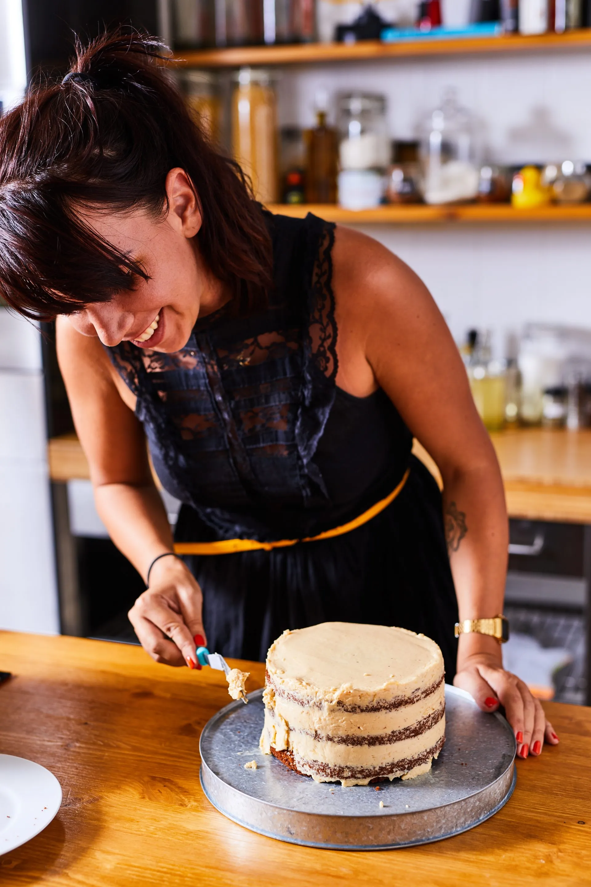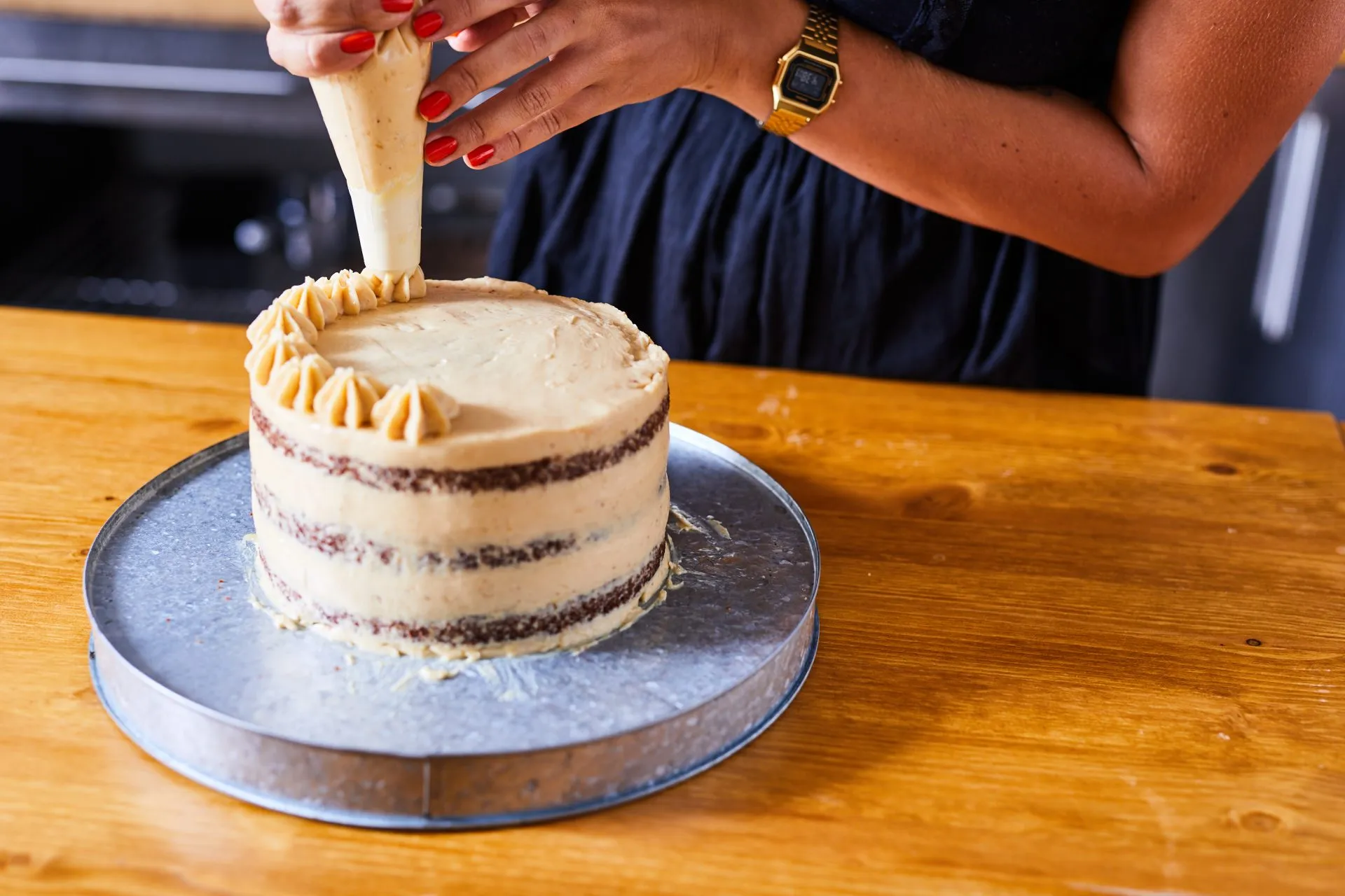 A vajat habosra keverjük a porcukorral, fahéjjal, majd hozzákeverjük a mascarponét és a brandy-t is. A krém kb. ⅔-át a rétegek közé kenjük, egymásra pakoljuk a lapokat, a maradék krémmel pedig körbekenjük a torta szélét. Csillagcsöves nyomózsákból kinyomjuk a maradék krémet, ezzel díszítjük a torta tetejét és rakunk még rá pár mézeskalácsot is!