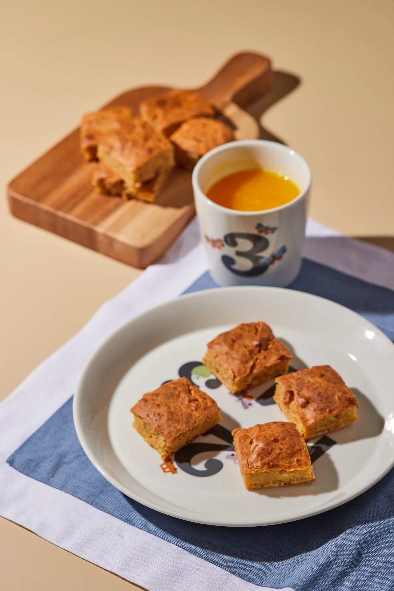 Tipp: A földimogyorókrémet helyettesíthetjük a receptben + 50 ml olajjal. A kész süteményt a még marokfogással fogó babáknak hasábokra vágjuk, hogy könnyen tudják tartani és megragadni. Nagyobb babáknak, kisgyerekeknek kockára vágva ideális.