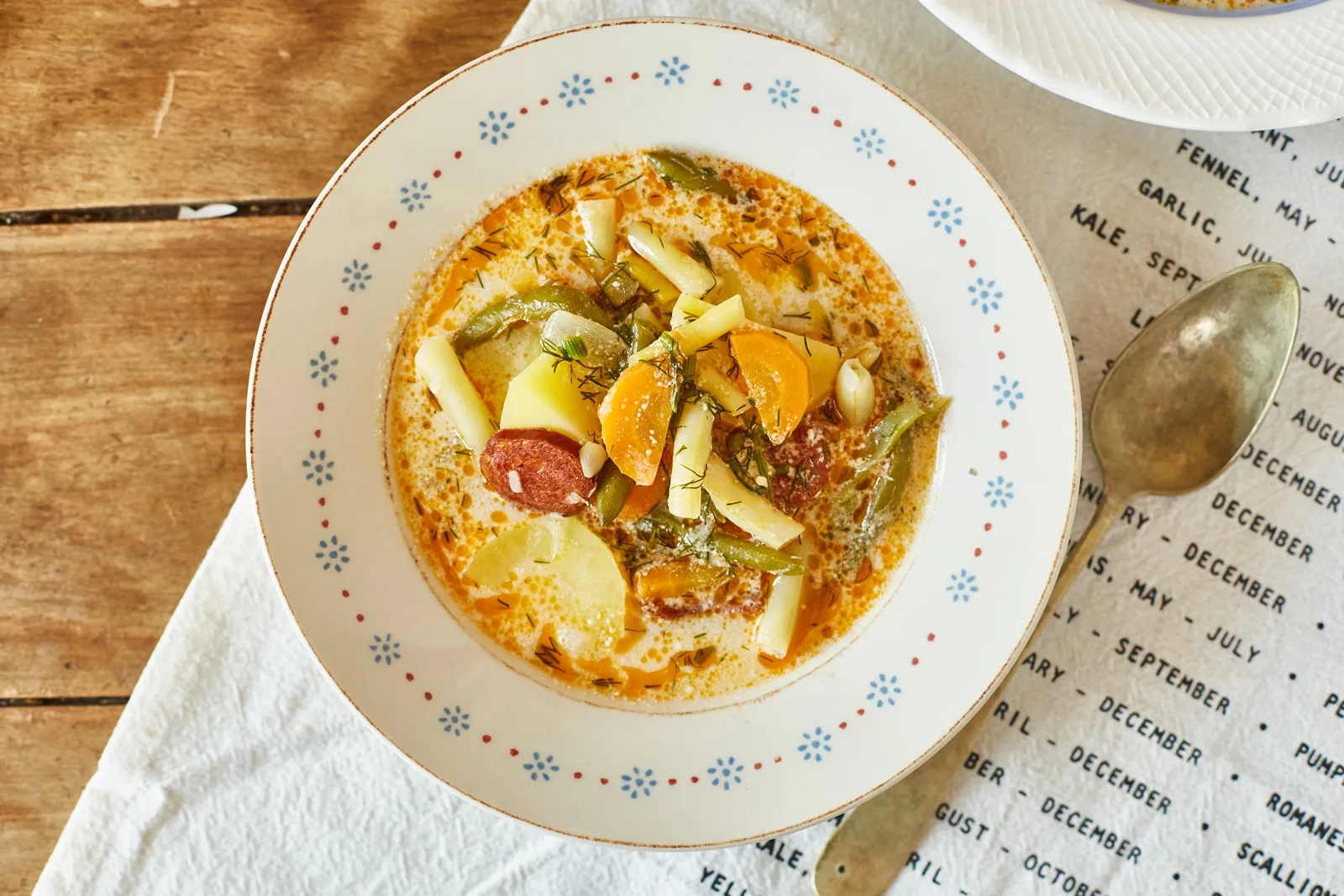 Ha kész, a habarás hozzávalóit egy közepes keverőtálban csomómentesre keverjük egy habverővel, és 2-3 részletben egy kevés levet adunk a levesből hozzá, hogy a hő ne kapja össze a tejfölt (ezt hőkiegyenlítésnek hívjuk), ezután az egészet lassan beleöntjük a levesbe. Hozzáadjuk az ecetet és az apróra vágott kaprot, majd elzárjuk. Friss kenyérrel tálaljuk.