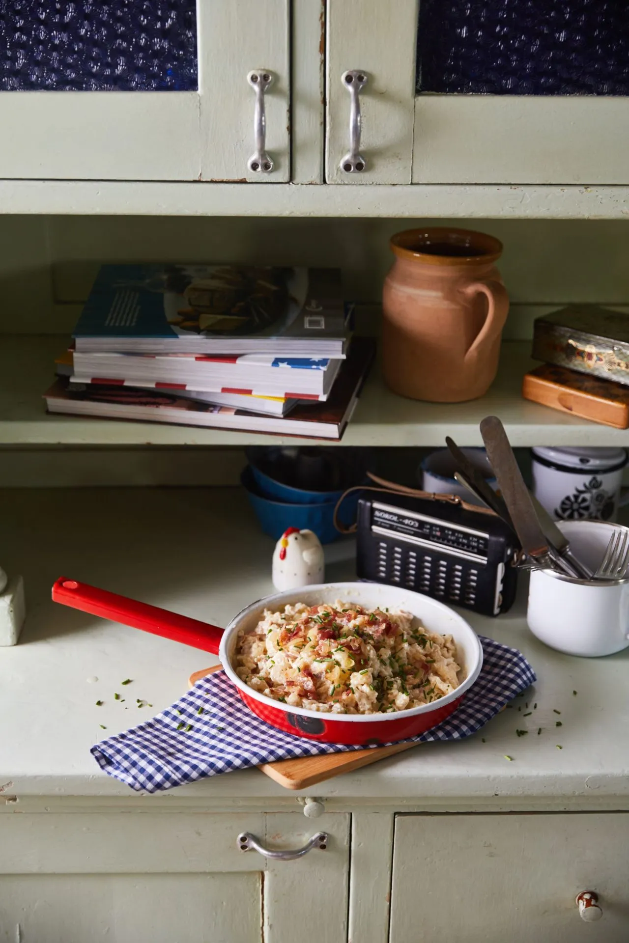 Ausztriában ott a Käsespätzl, Szlovákiában a sztrapacska, ezeknek a megúszós, gyors verziója ez a tejföllel és sajttal összeforgatott galuska. Nagyon egyszerű, hűvösebb napokon vagy nagy kirándulások után tökéletes választás.