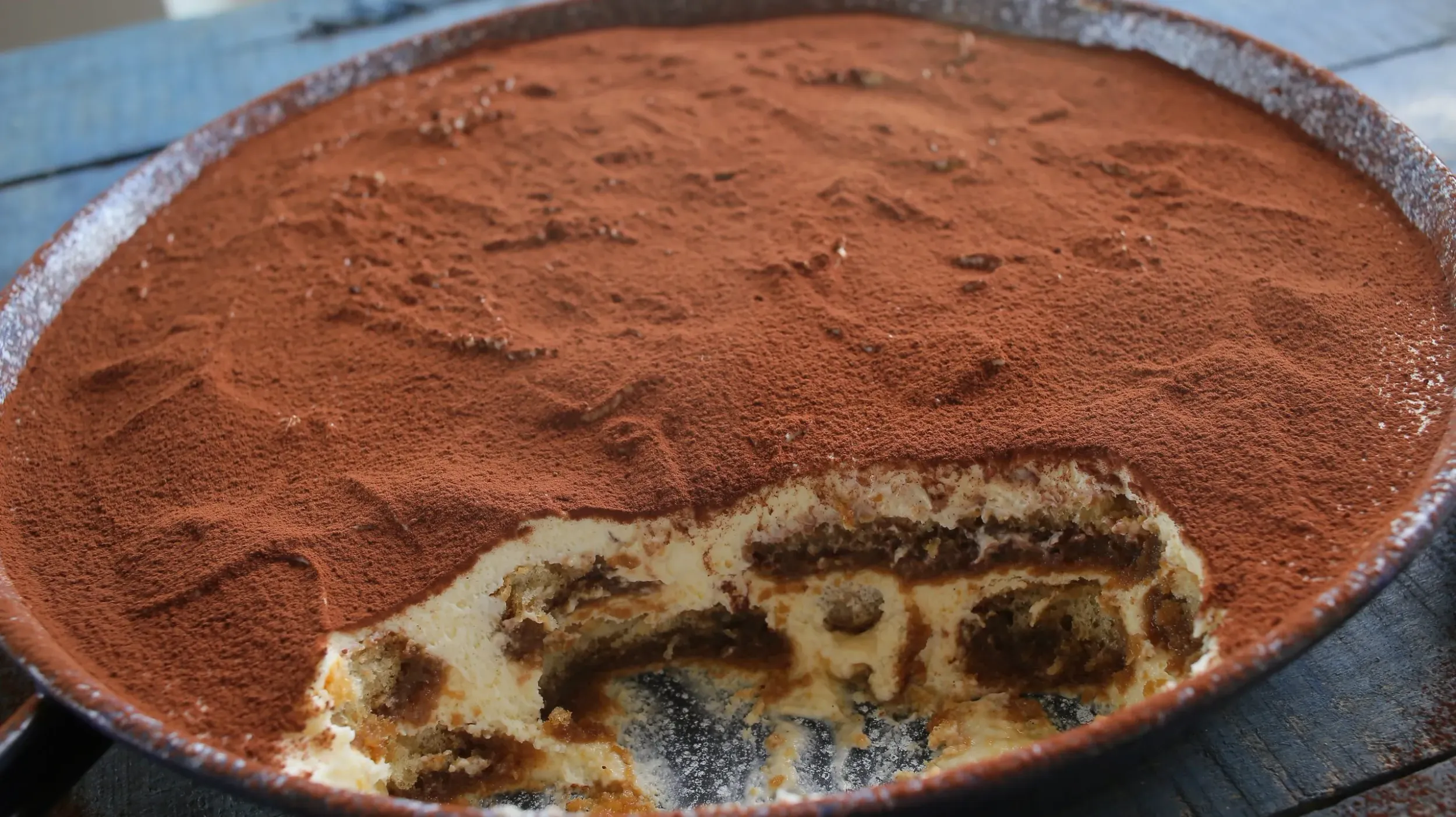 Jöhet a krémbe a mascarpone is, az egészet lazán összeforgatjuk és meg is vagyunk. Még jön egy gyors összeállítás: egy tál aljába kevés krémet kenünk szét és erre jönnek a whiskys kávéban 4-5 másodpercig forgatott babapiskóták. Beborítjuk a piskótákat a krémmel, aztán jöhet egy újabb réteg kávés piskóta. A tetejére megint krém jön, és ez így mehet be a hűtőbe legalább 2 órára, de inkább egy éjszakára. Tálalás előtt a tiramisut meghintjük kakaóporral és gyorsan meg is esszük a világ egyik legjobb desszertjét.