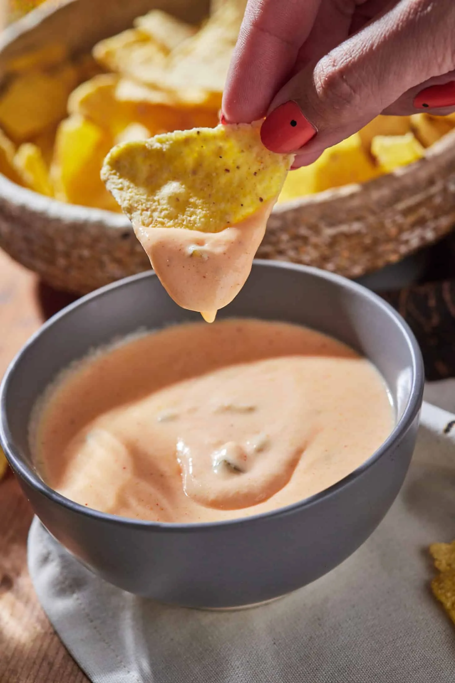 A sajtszószhoz először a paprikát nagyon apróra vágjuk, és lereszeljük a cheddar sajtot. A tejet közepes lángon felmelegítjük egy gyorsforralóban, beletesszük 2-3 részletben a sajtokat, majd mehet bele só, bors, a fokhagymapor, a ketchup, a fűszerpaprika és a jalapeno paprika. Összeforraljuk, a vízzel elkevert keményítővel besűrítjük, és meg is vagyunk.