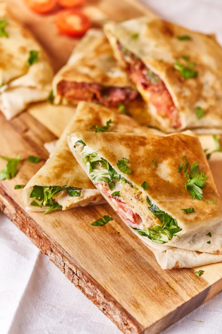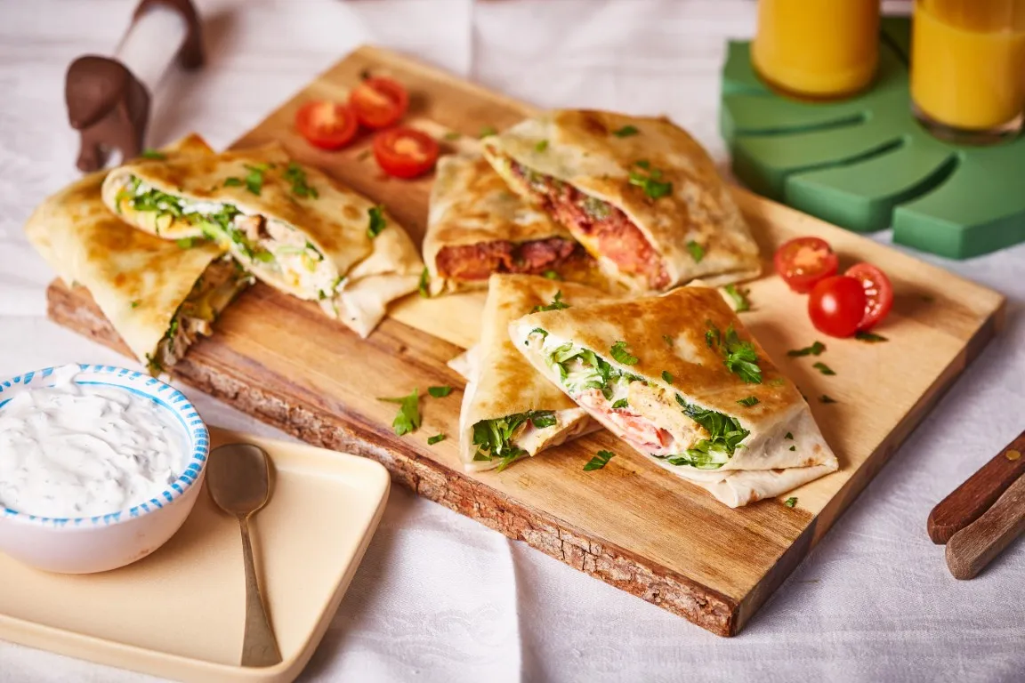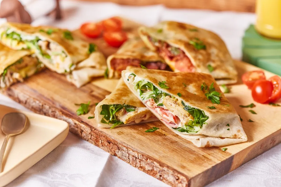 A reggeli tortillához a bacont egy serpenyőben ropogósra sütjük, majd félretesszük. A tojásokat felverjük, sózzuk, borsozzuk és a bacon visszamaradt zsírjára öntjük, rántottát készítünk belőle. A szósz összetevőit összekeverjük, ha szükséges, állítunk az ízeken. A tortilla közepét megkenjük a krémsajttal, erre kerül a madársaláta, majd a rántotta, a bacon, a felkarikázott koktélparadicsom, végül a szósz. Ha kész összehajtjuk: először oldalról, majd alul-felül is, végül az így képződött kis “tasak” mindkét oldalát közepes lángon egy leheletnyi olajon megpirítjuk.