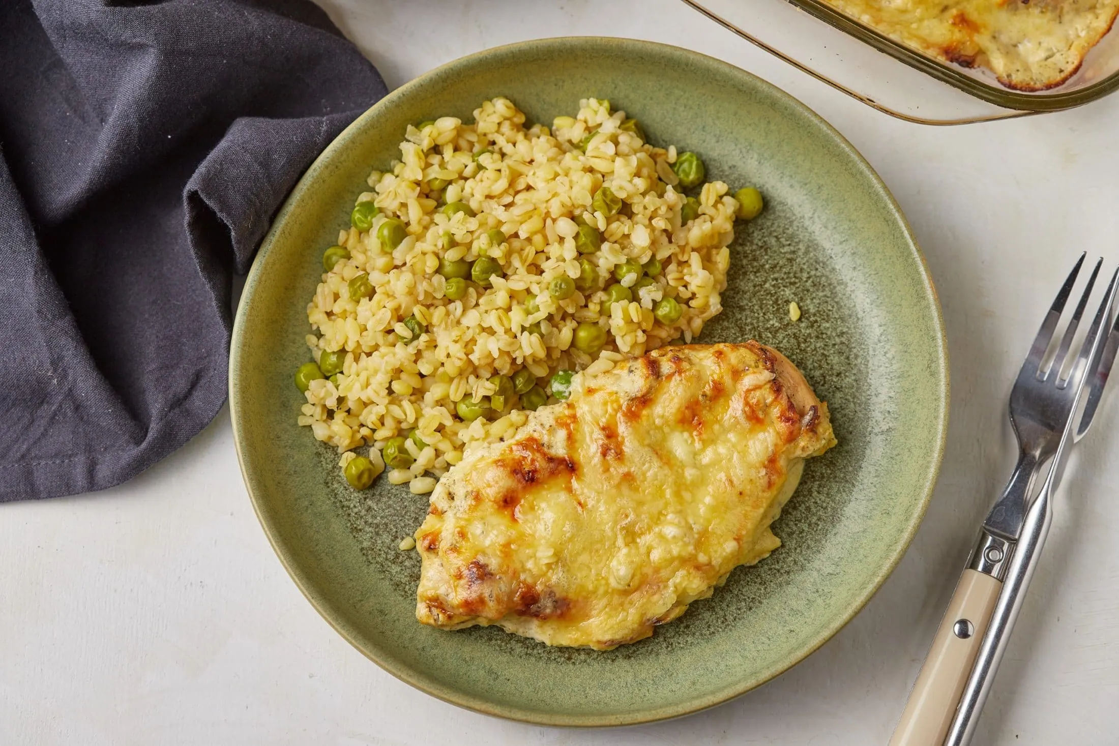 Ezután lereszeljük a sajtot, a csirkét egy tepsibe rakjuk, rátesszük a fűszeres krémsajtot, majd a reszelt sajtot, és 200 fokos sütőben kb 15 perc alatt, addig sütjük, amíg aranybarna lesz a sajt. Bulgurból készített rizibizivel tálaljuk.