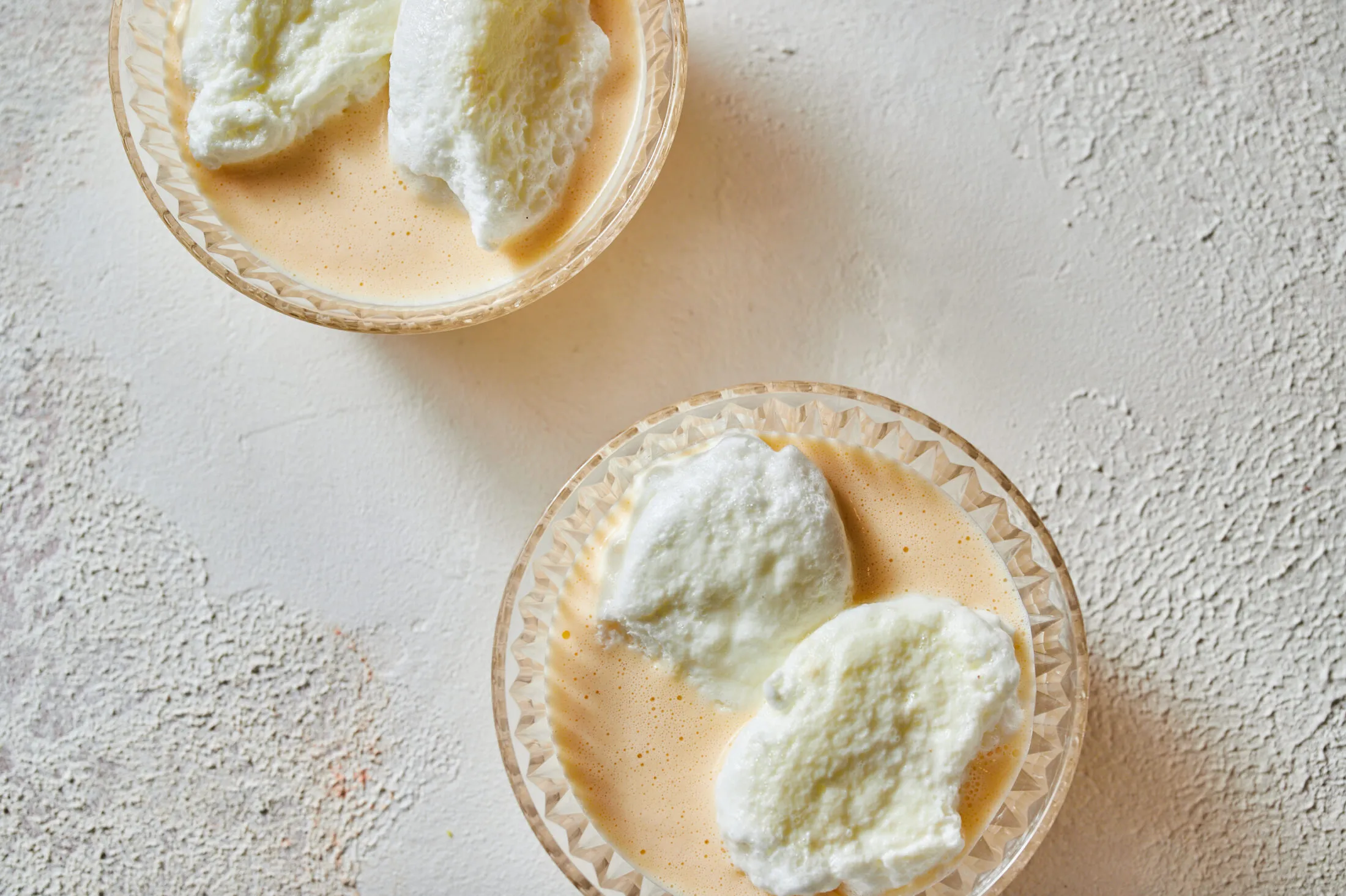 A gyöngyöző tejbe beleszaggatjuk a fehérjegaluskákat és kb. 2 perc alatt lefedve készre főzzük, majd kivesszük. A tojássárgáját habbá verjük a maradék cukorral, majd a forró tejből kanalazunk hozzá 1 merőkanálnyit, hogy ne legyen belőle egyből rántotta, ha hozzákeverjük a forró tejhez. A tejet folyamatosan kevergetve belecsurgatjuk a tojásos keveréket, és hozzáadjuk a fahéjat. A egészet közepes hőfokon addig főzzük, amíg a tej ismét el nem éri a forráspontot és be nem sűrűsödik. Hűtőhidegre hűtjük, és a habgaluskával tálaljuk.