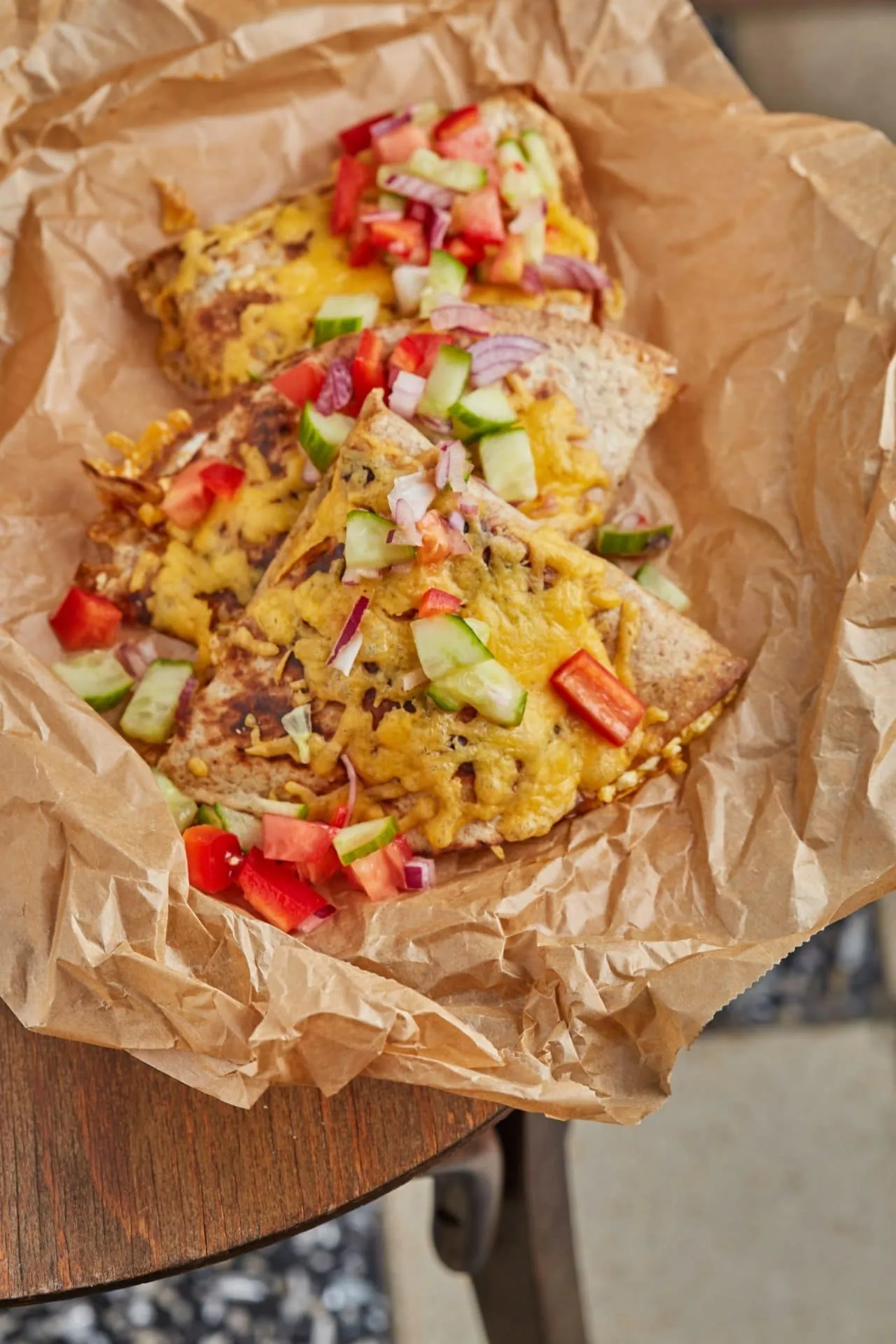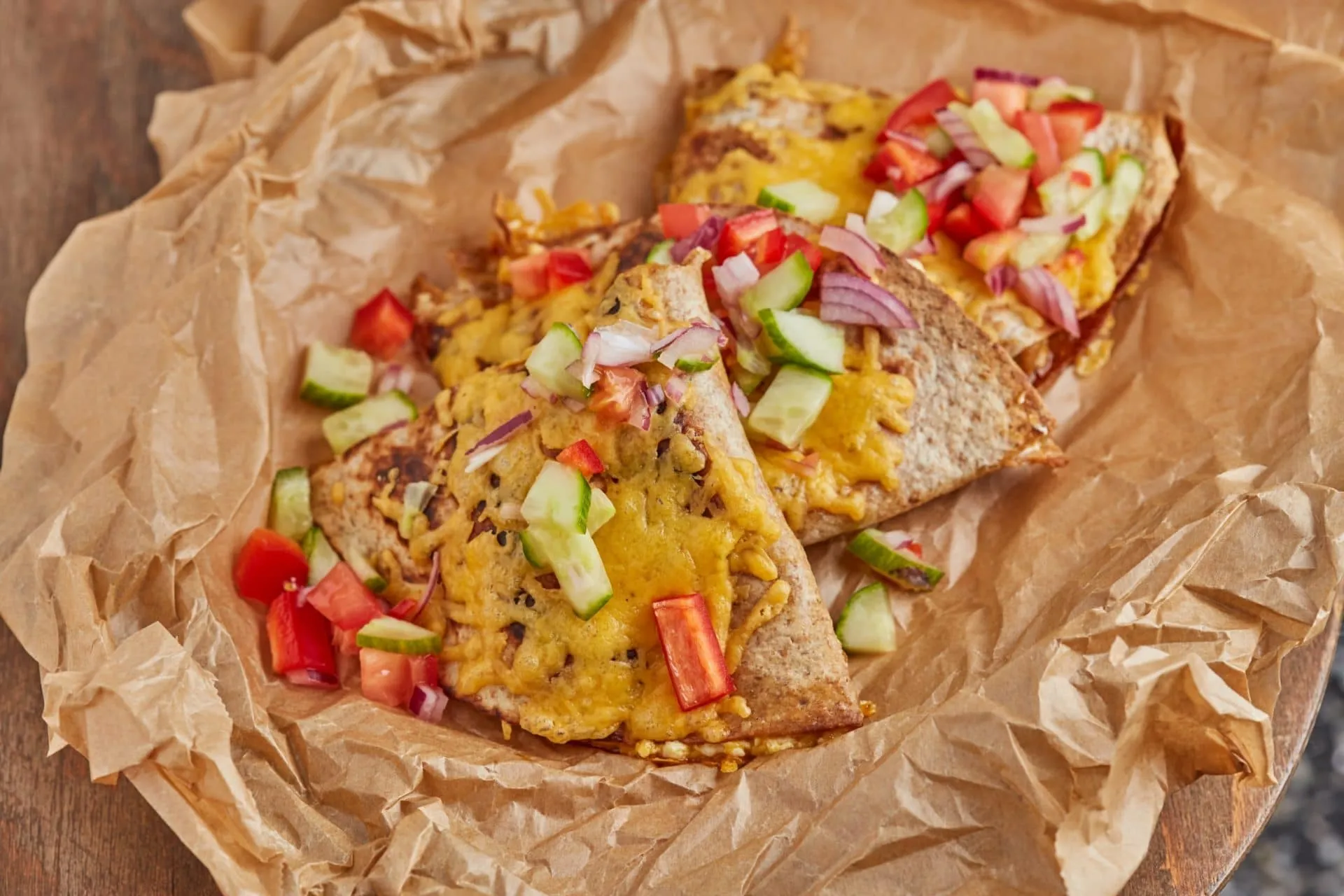 A sali hozzávalóit apróra vágjuk, és ha megsültek a tortillák, megszórjuk őket vele, és készen is vagyunk.