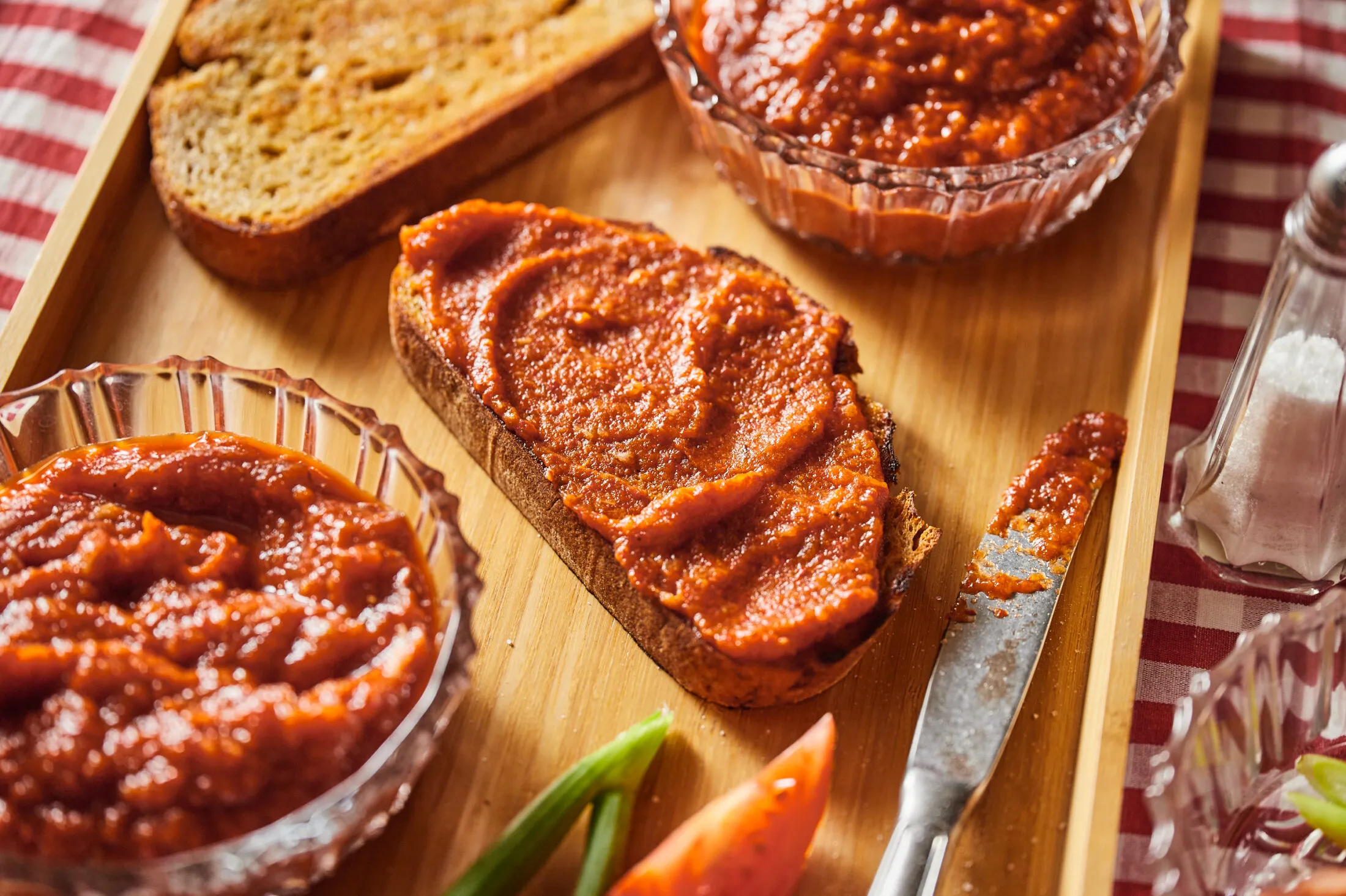 Megpucoljuk a sült zöldségeket, majd egy aprítógépbe tesszük a hagymával és a fokhagymával együtt, és leturmixoljuk. Ha nem fér bele az aprítóba, nyugodtan csináljuk több részletben és keverjük össze a végén. A citrom levével, sóval és borssal ízesítjük. Alaposan összekeverjük, és pirítóssal tálaljuk. Önmagában, a hűtőben kb. 1 hétig, sterilizált dunsztosüvegben eltéve, bontatlanul akár hónapokig is eláll.