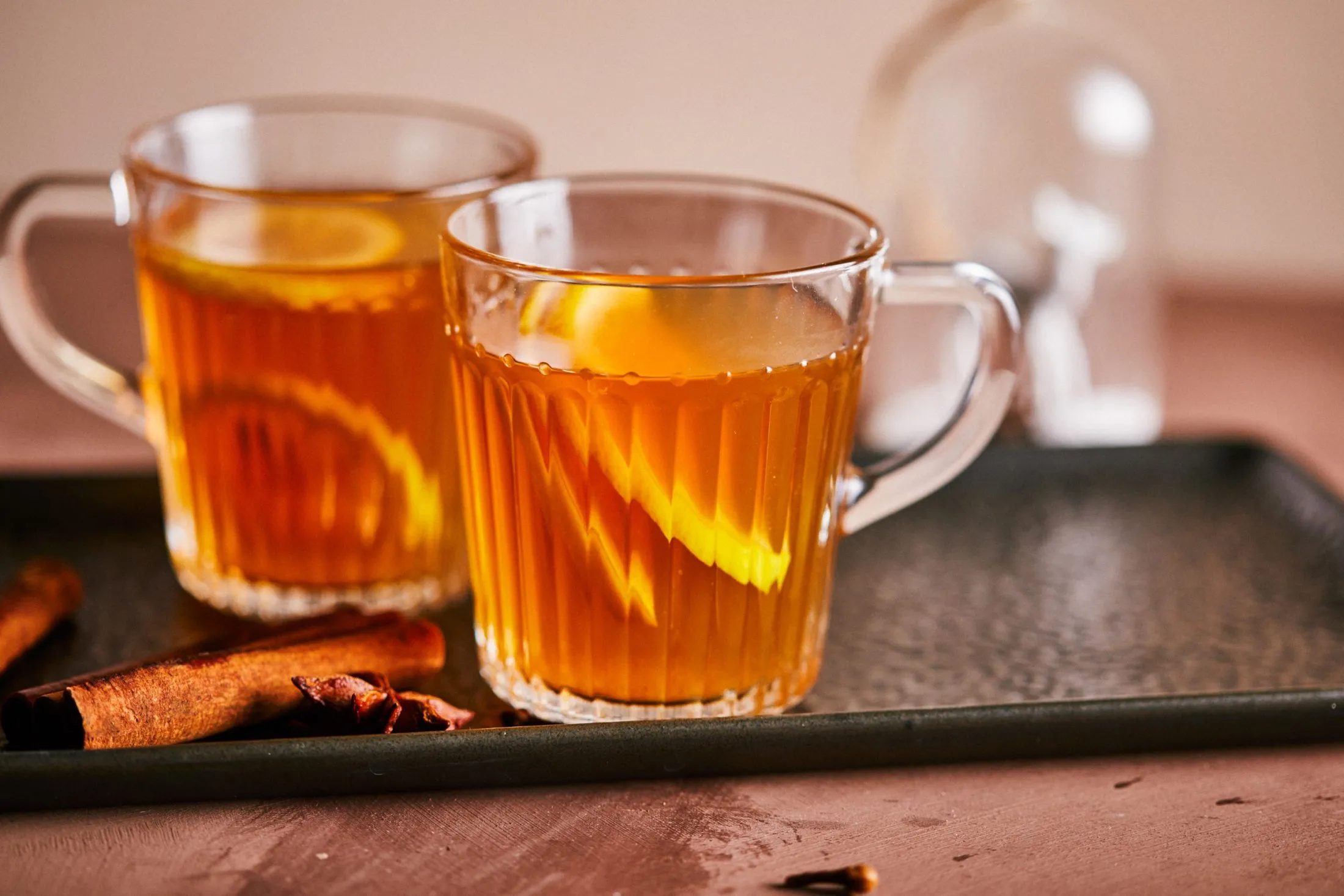 Egy lábasban karamellizáljuk a cukrot, hozzáöntünk egy kevés vizet, és ha újra feloldódott a visszakeményedett karamell, hozzáöntjük a többi vizet. Beledobjuk a 2 teafiltert, a kettévágott vaníliarudat, a gyömbért, a fahéjrudakat, a szegfűszeget, és felforraljuk a vizet. A filtert 4-5 perc múlva kivesszük, és alacsony lángon még 8-10 percig forraljuk a vizet a fűszerekkel. Elzárjuk a lángot. Az almákat meghámozzuk, kivágjuk a magházaikat, a narancsot és citromot jól megmossuk és szeletekre vágjuk őket. Felöntjük az alapot az almalével és a rummal, és beledobáljuk a gyümölcsöket. Szerintem másnapra érnek igazán össze az ízek, így akkor érdemes leszűrni, de persze azonnal is fogyasztható. :)