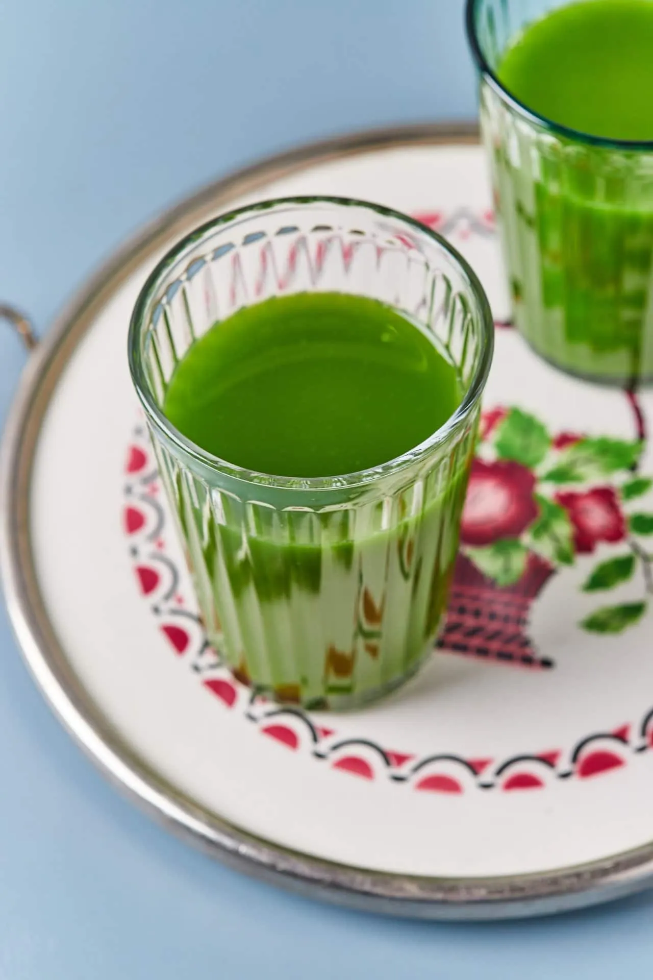 A juice-hoz az almákat megpucoljuk, félbevágjuk, kicsumázzuk, kisebb darabokra vágjuk, majd beledobjuk a turmixgépbe. Mehet bele a spenót is, a kisebb darabokra vágott zellerszár és kígyóuborka, a víz, majd a méz is, és az egészet alaposan leturmixoljuk. Apró lyukú szűrőn átpasszírozzuk, és behűtve fogyasztjuk.