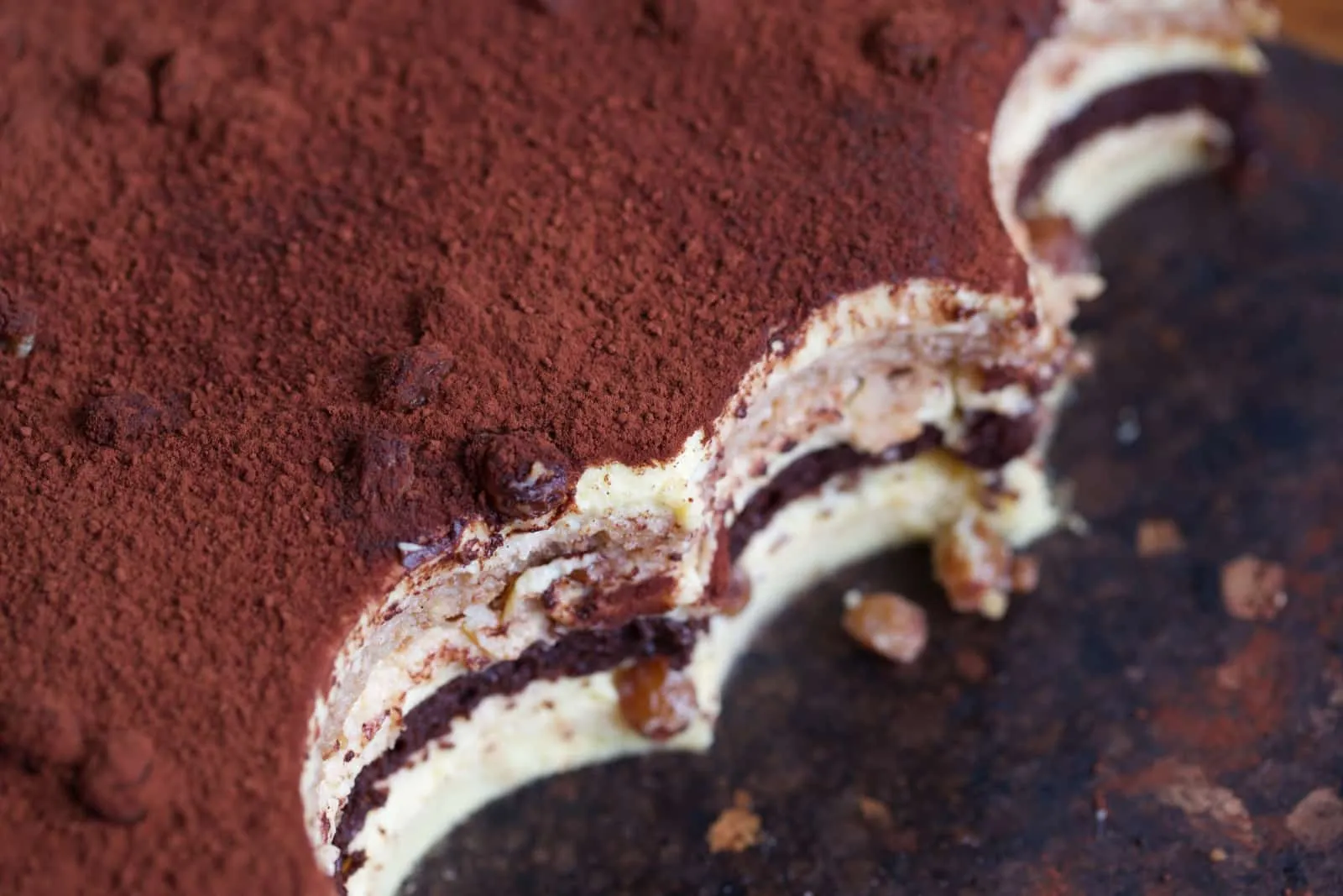 Először is nekilátunk a piskóták megsütéséhez: a vaníliás piskótához szétválasztjuk a tojásokat, a sárgájához hozzáadjuk a vaníliát, a cukor kétharmadát és a puha vajat. Fehéredésig keverjük habverővel, majd hozzáadjuk a vizet, és azzal is elkeverjük. Félretesszük, és egy csipet sóval és a maradék cukorral közepesen kemény habot verünk a fehérjéből. A tojássárgájás masszához két részletben óvatosan hozzákeverjük a fehérjét, majd több részletben rászitáljuk a lisztet és összeforgatjuk. A diós és a kakaós piskótánál hasonlóképpen járunk el, de a liszt beleszitálása mellett a darált diót/kakaóport is hozzáadjuk a masszához. Mindhárom piskótát külön-külön, 20x30 cm-es, sütőpapírral bélelt tepsire simítjuk 2 cm vastagon, és 200 fokra előmelegített sütőben 11 perc alatt világosra sütjük.