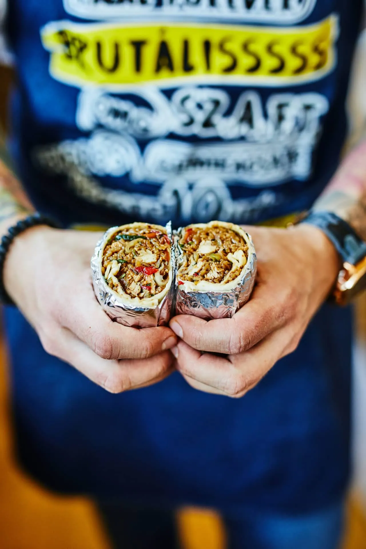Egy száraz, nagyon forró, tapadásmentes serpenyőben pár másodperc alatt megpirítjuk a tortillák mindkét oldalát, majd rakunk bele a pirított rizsből, és két oldalát behajtva szorosan feltekerjük.