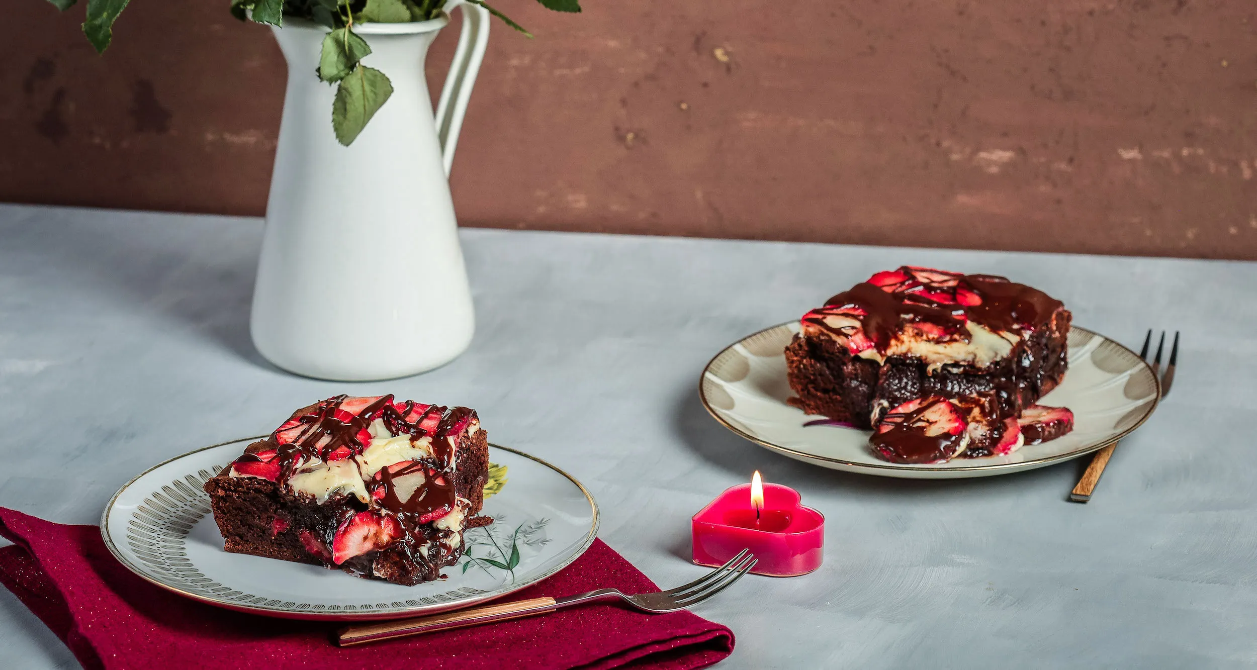 Ha kihűlt, vízgőz felett (vagy mikróban) megolvasztjuk az ét- és a fehér csokit, a maradék epret pedig 2-3 mm vastag szeletekre vágjuk. A kihűlt brownie tetejét először lekenjük a fehér csokival, majd jöhet az eper, végül pedig az étcsoki, amit csak rálocsolunk.