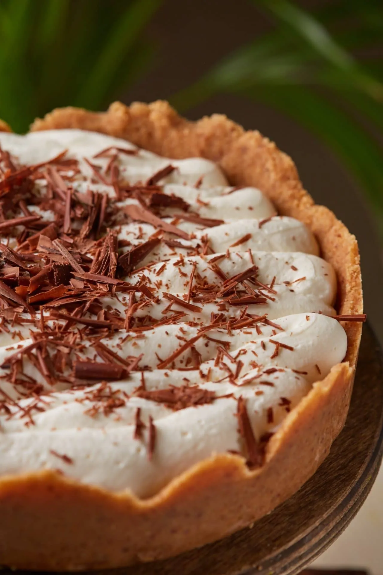 A banánokat felszeleteljük, és végigrakjuk vele a karamellt. A jéghideg habtejszínből tejszínhabot verünk egy robotgéppel vagy habverővel, aztán egy habzsákba téve a torta tetejére nyomjuk. A hűtőből kivett étcsokival vagy megreszeljük, vagy egy késsel, az élét enyhén megdöntve, magunk felé húzva csokiforgácsokat csinálunk, és ezzel szórjuk meg. Hűtőbe tesszük, amíg teljesen le nem hűlt.