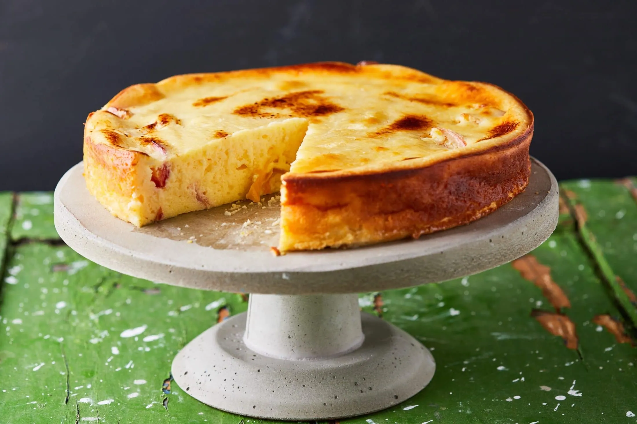 A sajtkrémet egy habverővel enyhén kihabosítjuk a cukorral, majd a tojásokat egyesével alaposan belekeverjük a krémbe – a következőt csak akkor hozzáadva, ha az előzőt teljesen összedolgoztuk a krémmel. A fehér csokit belereszeljük egy kis lyukú reszelőn, és ugyanígy teszünk a citrom héjával. A lisztet alaposan elkeverjük a krémben, majd a tetszőleges méretre vágott barackot is beleforgatjuk.