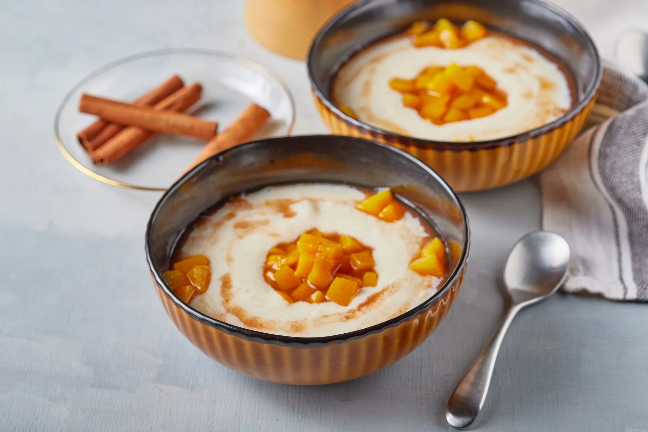 Közben a befőttet leszűrjük, a szirupot egy gyorsforralóban sűrűbbre forraljuk, beleszórjuk a fahéjat, majd a közben felkockázott barackot is, és levesszük a tűzről. A kész tejbegrízt a „barackraguval” tálaljuk.