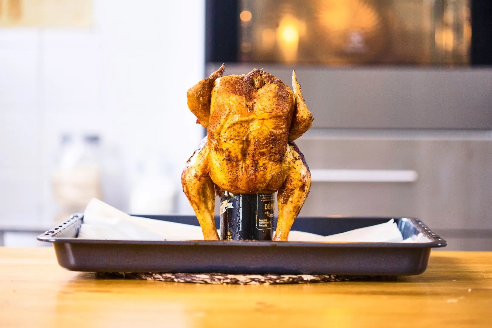 Maga a megtestesült szürrealizmus vagy még inkább a valóra vált álom: csirke és sörösdoboz találkozása a sütőben.