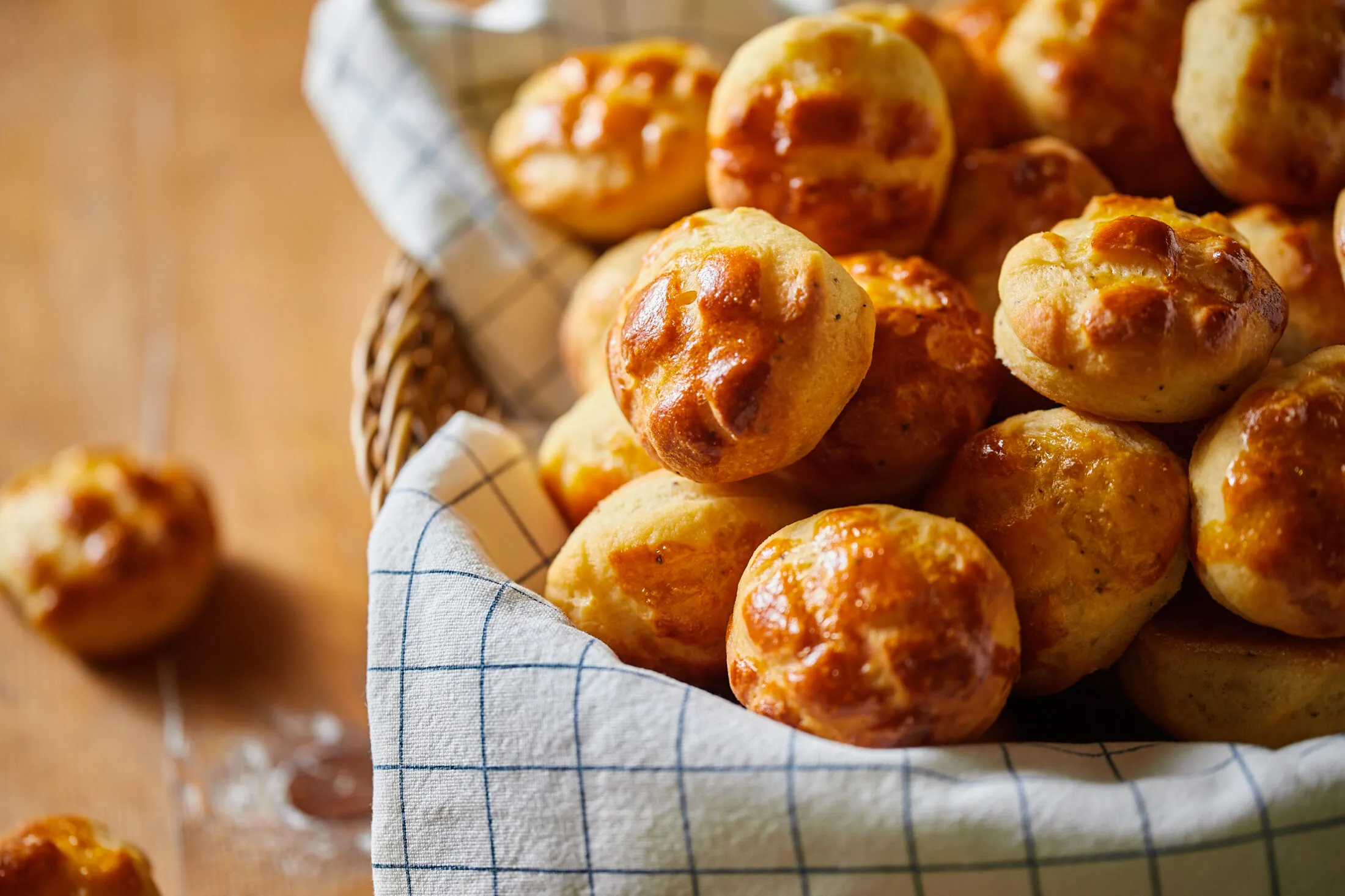 Lisztezett felületre borítjuk a tésztát, és 1,5 cm vastagságúra nyújtjuk. Ezután 0,5 cm-es távolságban, keresztben beirdaljuk a tetejét. Egy 4 cm átmérőjű kiszúróval kiszaggatjuk a pogácsákat, és egy sütőpapírral bélelt tepsire sorakoztatjuk őket 1,5 cm távolságra egymástól. Lekenjük a tetejüket a felvert tojással, betesszük a 180 fokra előmelegített sütőbe, és 20 perc alatt készre sütjük.