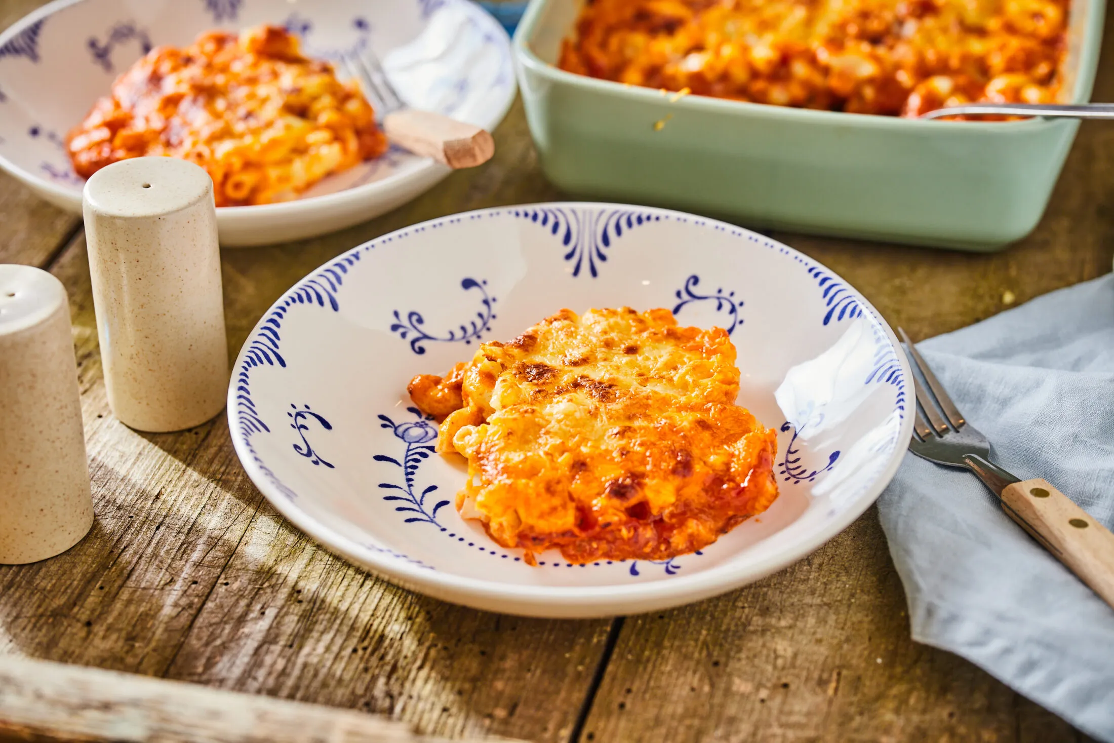 A bolognais mac and cheese elkészítéséhezhez a tésztát a csomagoláson jelzett idő feléig főzzük bő sós, lobogó vízben, majd leszűrjük. A tejet és a tejszínt közepes lángon felforraljuk egy lábosban, beleszórjuk a chilipelyhet, és sózzuk, borsozzuk. A sajtokat lereszeljük, és 50 g gouda kivételével az összeset beleszórjuk a forró tejes-tejszínes keverékbe. Közepes lángon addig melegítjük folyamatosan kevergetve, míg egynemű mártást nem kapunk. Ekkor belekeverjük a kifőtt tésztát.