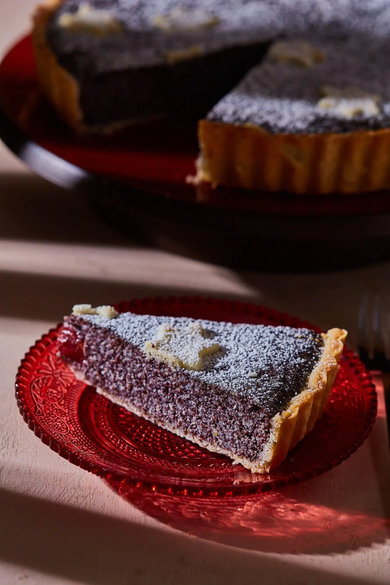 Közben a mákot, a tejet, a porcukrot és a búzadarát kb. 4-5 perc alatt összefőzzük egy edényben, majd belekeverjük a tojásokat, a vajat, a citromhéjat, valamint a lecsepegtetett meggybefőttet.