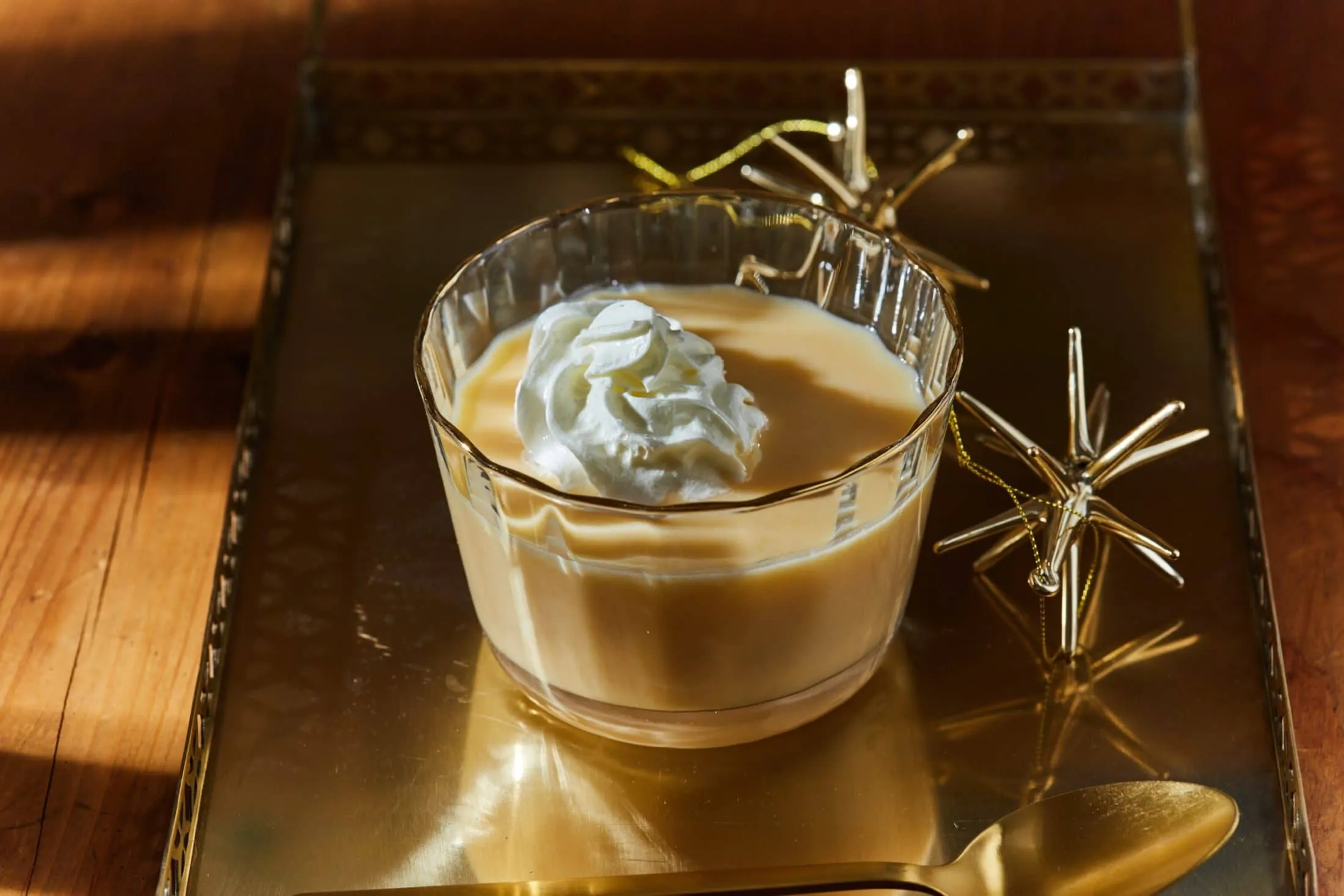 A tojássárgákat összekeverjük a tejszínnel, és csomómentesre keverjük a keményítővel, majd hőkiegyenlítéssel a leveshez adjuk, és addig kevergetjük, míg egy kicsit be nem sűrűsödik. Az egészet átszűrjük, majd hagyjuk kihűlni. Kis tejszínhabbal díszítjük, és már fogyaszthatjuk is.