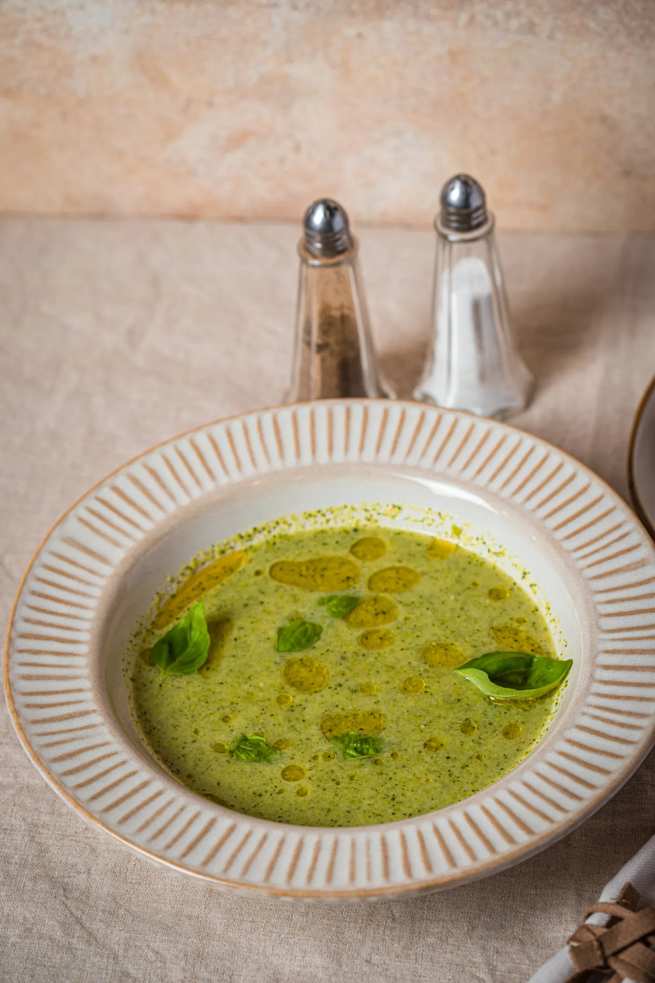 A brokkolikrémleves első lépéseként a vajat felolvasztjuk egy edényben, és hagyjuk, hogy enyhén barnás színt kapjon. Közben apróra vágjuk a kétféle hagymát, a brokkolit rózsáira szedjük, és a torzsáját kis kockákra vágjuk. Ha megbarnult a vaj, mehet rá a hagyma, sózzuk, borsozzuk, majd ha megpirult, rádobjuk a brokkolit, ráreszeljük a szerecsendiót, és felöntjük annyi alaplével, ami ellepi. Addig főzzük, amíg meg nem puhul a brokkoli. Leturmixoljuk, és citromlével ízesítjük.