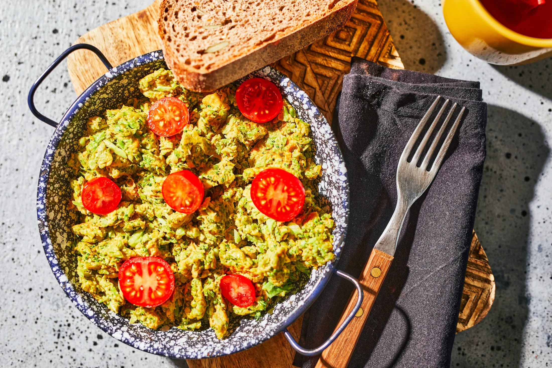 Olajat hevítünk egy serpenyőben, és kb. 2 perc alatt megsütjük benne a brokkolis tojást. A koktélparadicsomokat felkarikázzuk, és a rántotta tetejére helyezzük, hogy még mutatósabb legyen ez a villámgyors reggeli, ami egy jó kis vacsorának is megfelel. Friss kenyérrel tálaljuk.