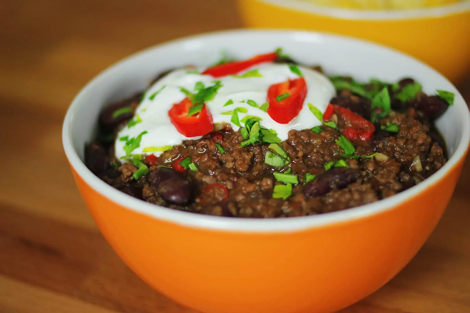 A chili con carne a tex-mex konyha egyik legismertebb ikonja: sűrű, fűszeres, masszív egytálétel, amelyben a darált marhahús, a chili és a hosszú, lassú főzés találkozik. Egy olyan fogás, ami már az első illatával jelzi, hogy nem siet sehova — és aki megfőzi, annak sem érdemes. Tele van karakterrel, aromával és mélységgel, a füstös paprikától a római köményig, a csípős chilitől a paradicsomos ragualapig.