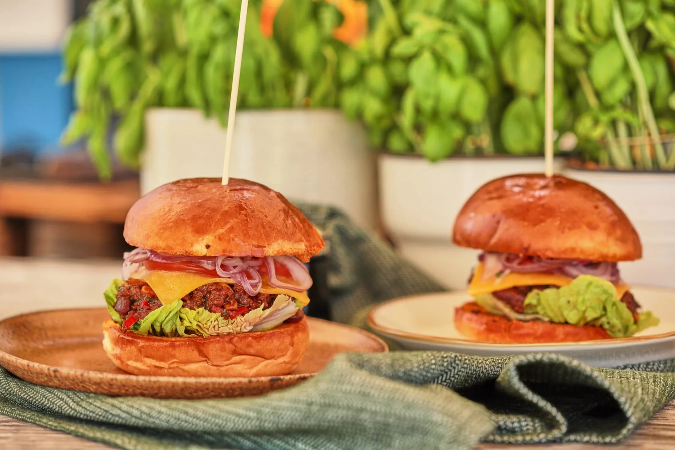 Összeállítjuk a hamburgert: a buci aljára teszünk néhány salátalevelet, erre kanalazunk a raguból, ráhelyezzük a sajtot, a felkarikázott paradicsomot, a lila hagymát, majd rátesszük a buci tetejét is.