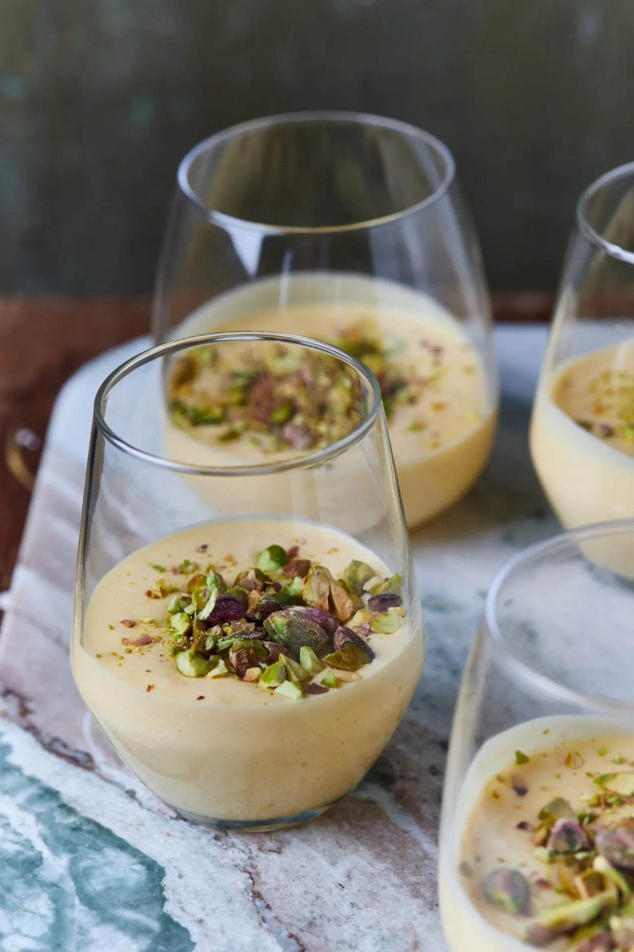 Hagyjuk egy kicsit hűlni a csokit, majd hozzákeverjük a tojássárgáját, azután 2-3 részletben a tojásfehérjét, végül a tejszínhabot, szintén 2-3 részletben. A mixünket 4-6 pohárba csorgatjuk, majd legalább 1-2 órán át hűtjük. Fogyasztáskor megszórjuk aprított pisztáciával.