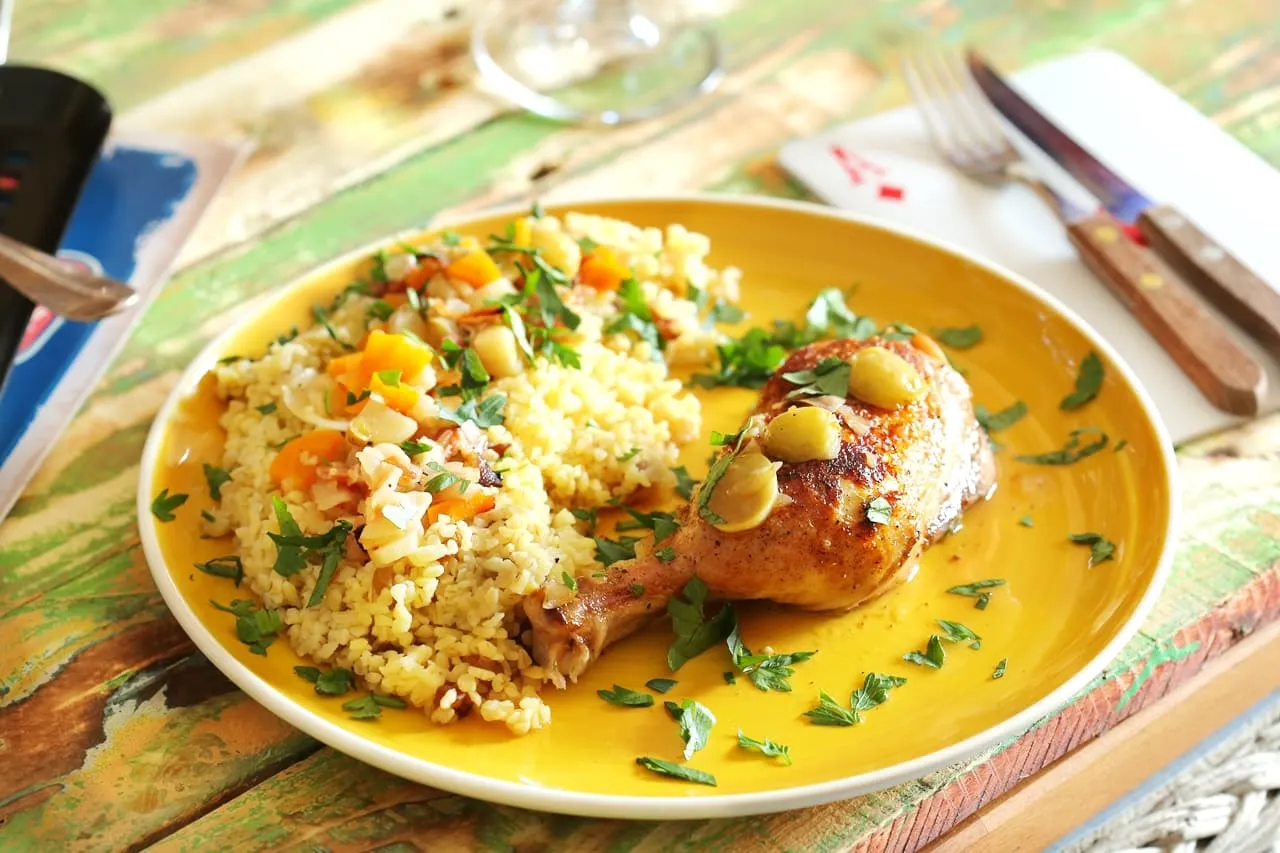 Ha valakinek előálltok ezzel a menüvel, akkor tuti, hogy leveszitek a lábáról az illetőt. Pedig igazából egy roppant egyszerű fogásról van szó, ami akár randikajaként is működik. Összedobtok egy cideres-szőlős csirkecombot, közben elkészültök a bulgurral is, ehhez kevertek egy kis mazsolát és voilá, kész is vagytok vele!
