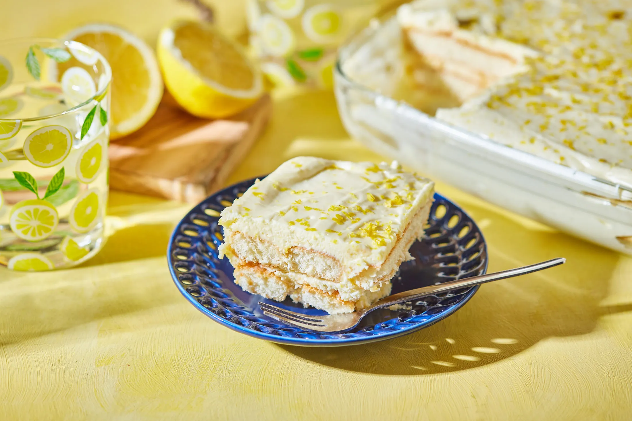 Egy jénai forma aljába teszünk a krémből, jöhet rá 12 db babapiskóta, ezt megkenjük a krémmel, aztán még 12 db piskóta majd a maradék krémmel befedjük a tetejét, ráreszeljük a megmaradt citrom héját, és a hűtőbe tesszük, amíg a babapiskóta bepuhul.