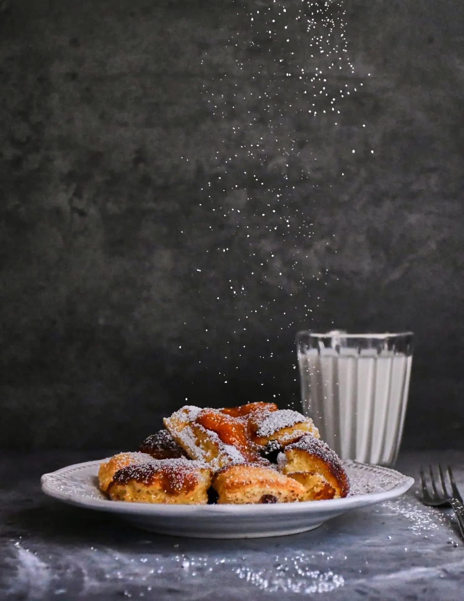 Megszórjuk a tetejét 2-3 evőkanál cukorral, majd egy határozott mozdulattal megfordítjuk, és megsütjük ezt az oldalát is úgy, hogy közben nagyobb darabokra szaggatjuk a tésztát. Átforgatjuk, hogy minden oldalát érhesse még hő, majd tányérra szedjük, és baracklekvárral, valamint porcukorral tálaljuk.