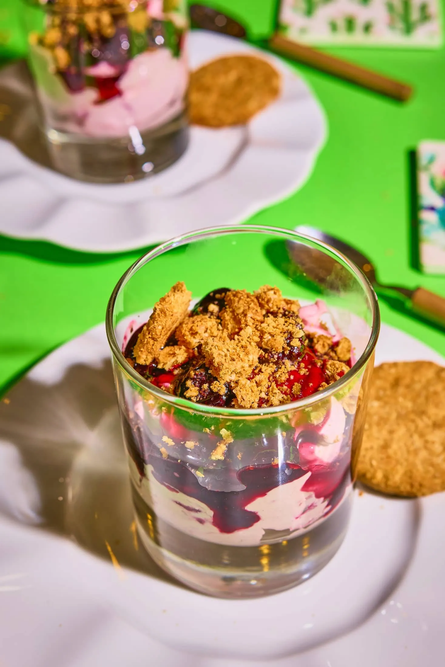 A cseresznyeragus pohárkrém elkészítéséhez a cseresznyét kimagozzuk és a keményítő kivételével a többi hozzávalóval összeforraljuk 2-3 perc alatt. A vízzel kikevert keményítővel besűrítjük, majd hagyjuk kihűlni. A mascarponét 2-3 perc alatt kihabosítjuk, hozzáadjuk a ragu felét és a sűrített tejet. Ezután poharakba rétegezzük: a krémre jöhet a ragu, végül a tetejére a tört keksz.