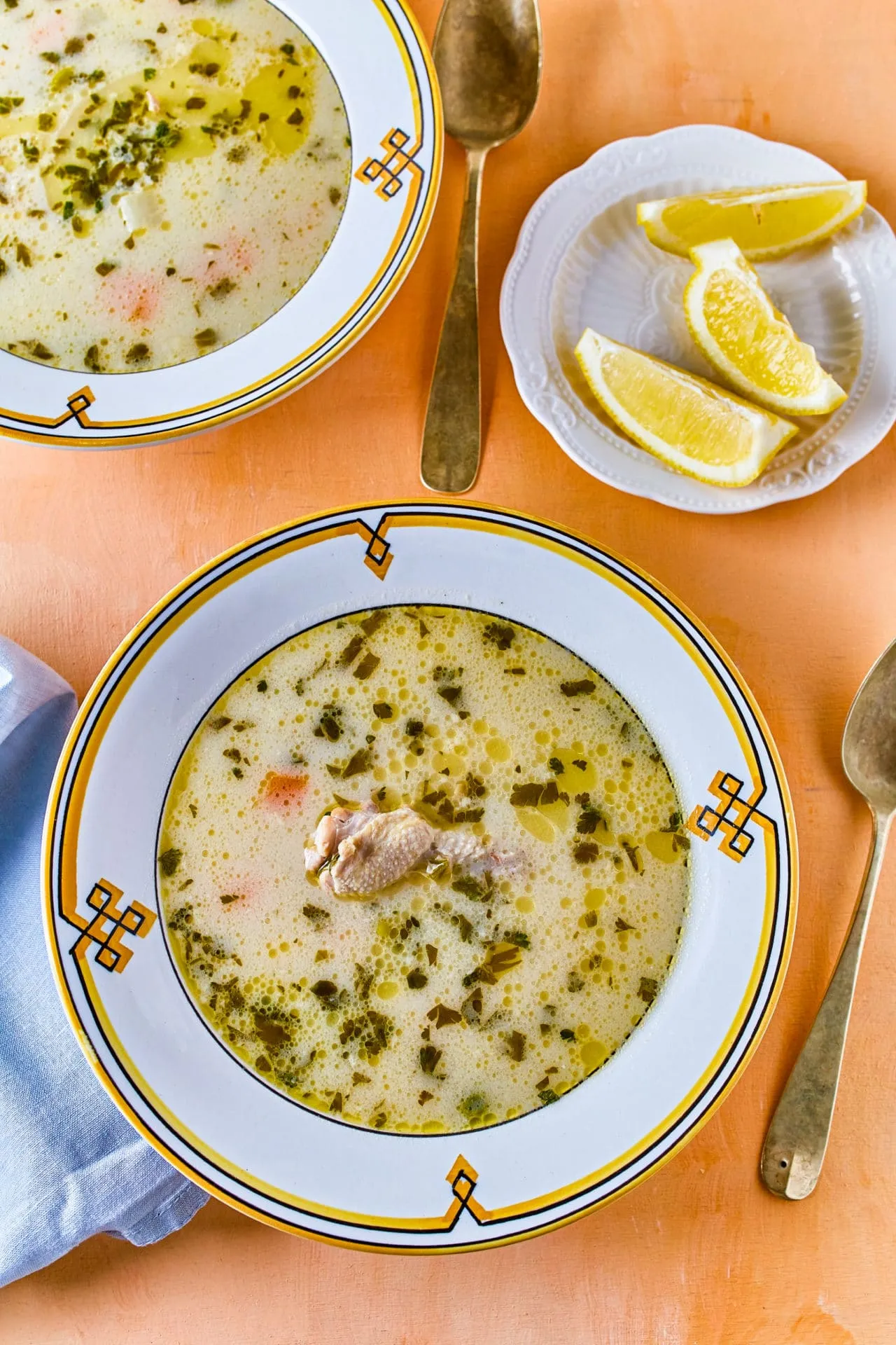 A főzés vége felé beleszórjuk a zöldborsót, majd pár perc múlva mehet bele az apróra vágott petrezselyem, a kakukkfű, a citromlé, fél citrom héja és a tejszín. Egyet még forralunk rajta, és kész is a levesünk.