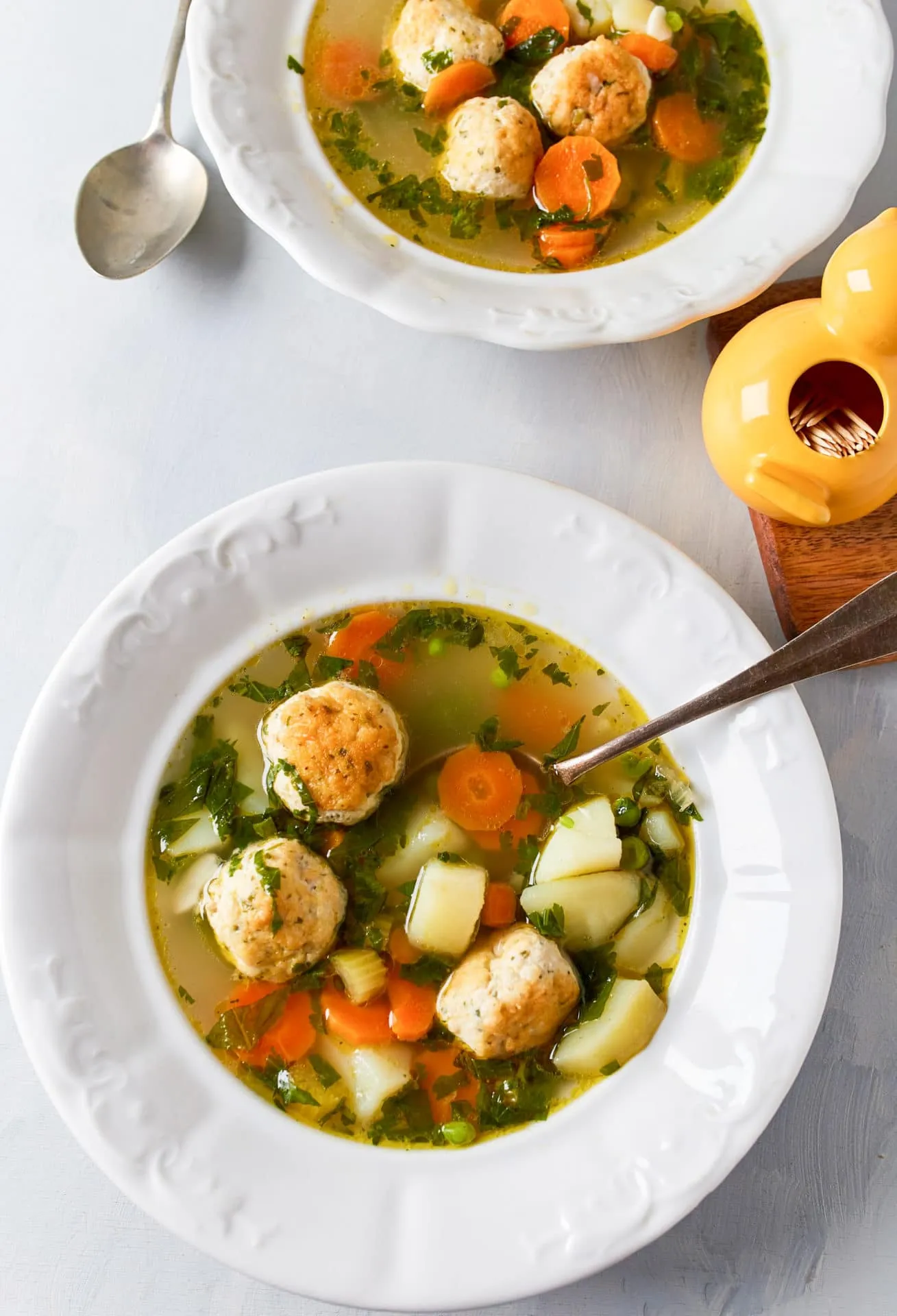 A csirkehúsgolyós nyári leves nagyon egyszerűen elkészíthető. A húsgolyóhoz a kis kockákra vágott csirkemellet egy aprítógépben elkezdjük lezúzni. Ezután belerakjuk a többi hozzávalót, és addig zúzzuk, amíg nagyjából egynemű nem lesz. Vizes kézzel golyókat formázunk belőle.