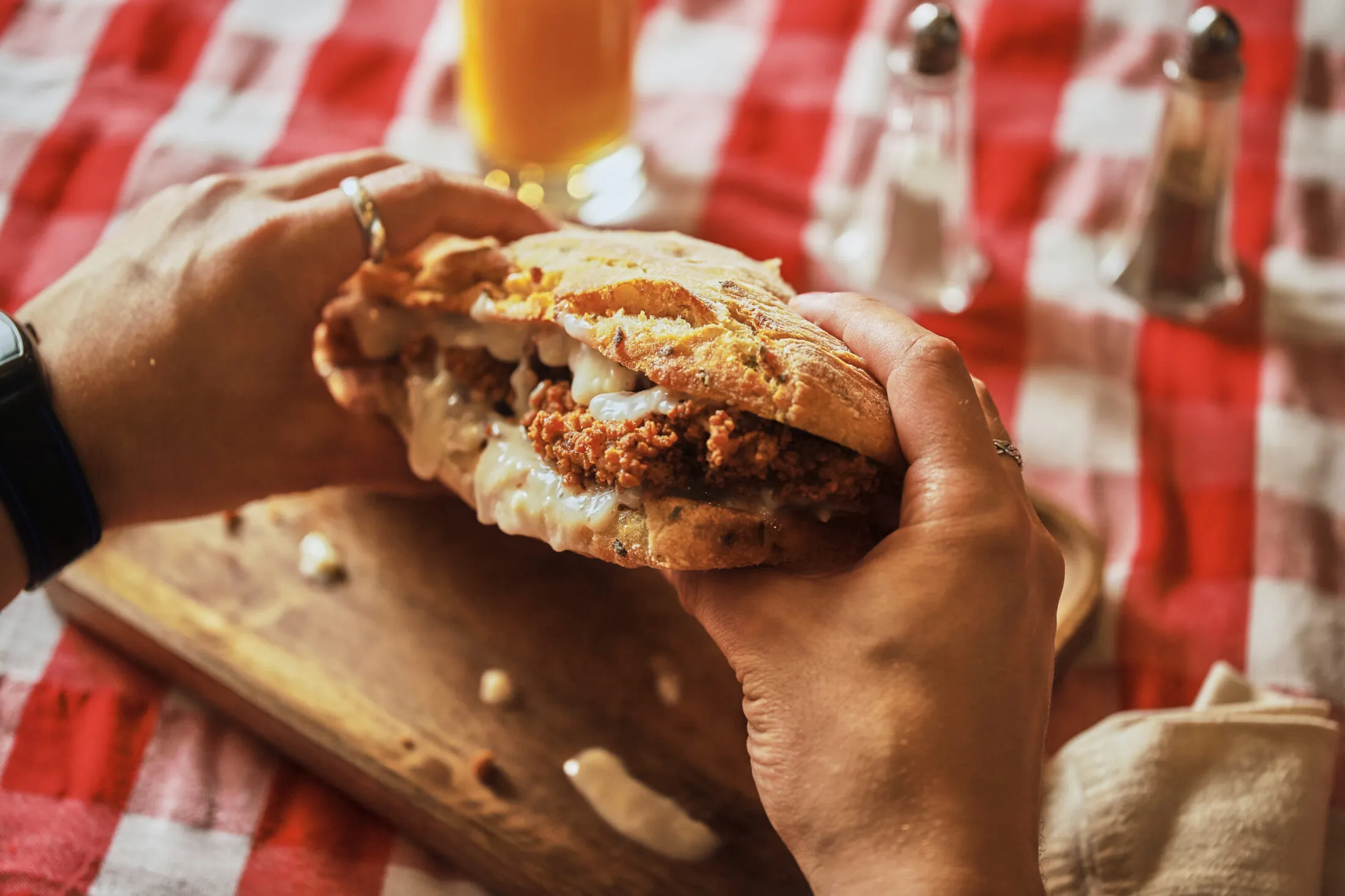 A ciabattákat kettévágjuk, mindkét felüket alaposan megvajazzuk és egy serpenyőben, közepes hőmérsékleten lepirítjuk, aztán jöhet a szendvicsek összeszerelése. A péksütik vágott felületeit megkenjük a szósszal, ráhelyezzük a rántott csirkét és összezárjuk a műalkotást.