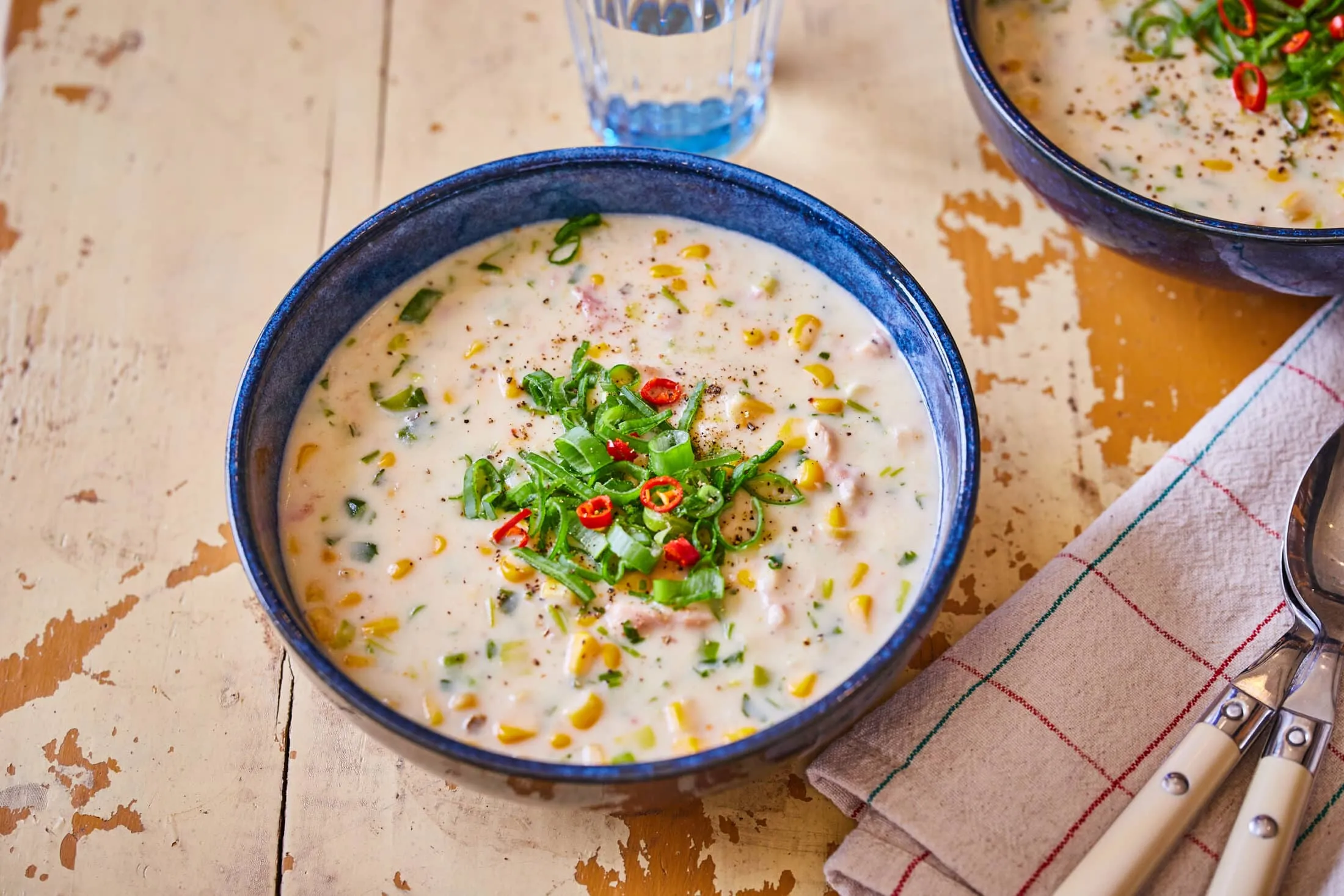 Csirkés-kukoricás-újhagymás chowder (Fotó: Street Kitchen)