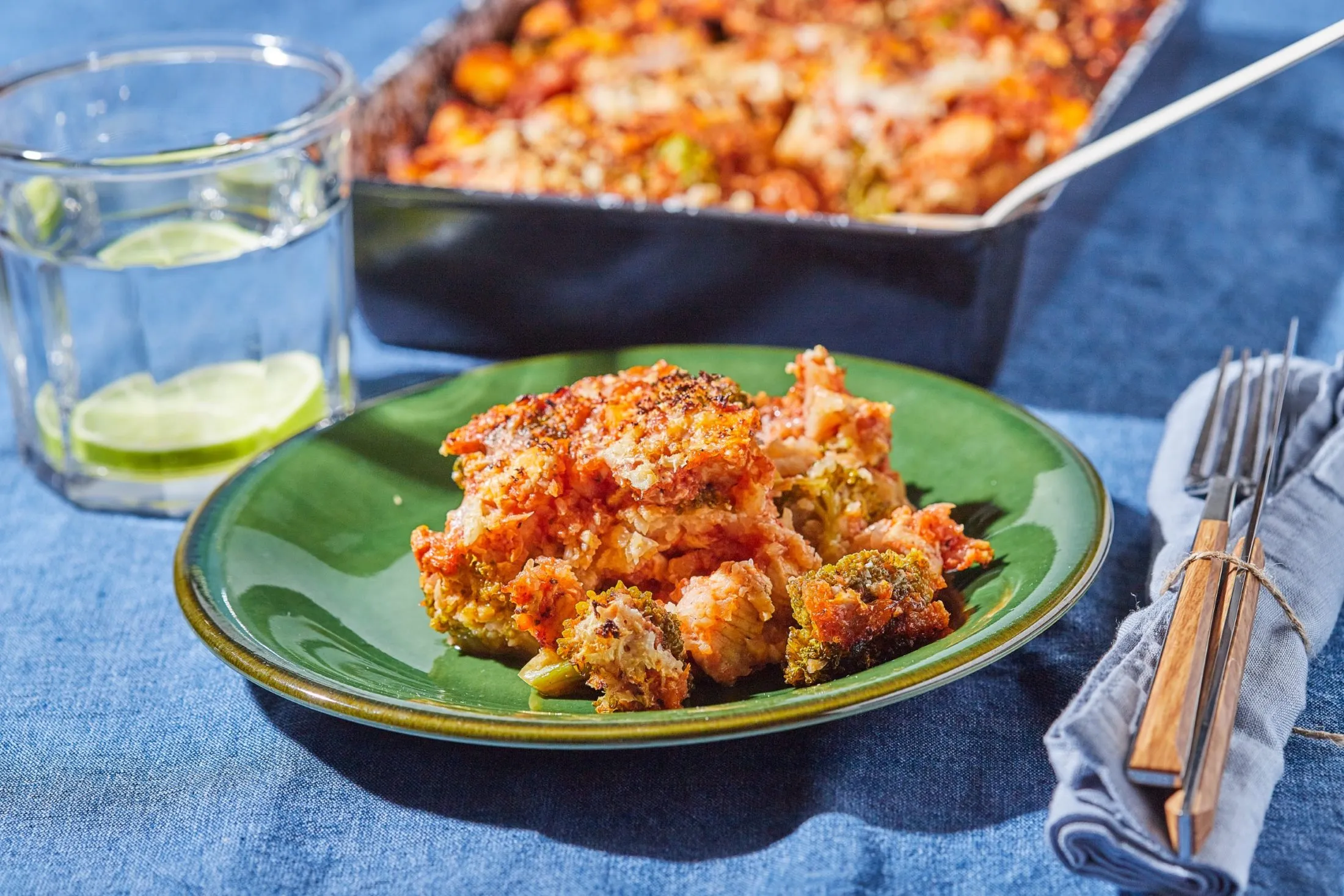 Egy tepsit átkenünk kókuszolajjal, megszórjuk a zabpehelyliszttel, és egymásra rétegezzük a hozzávalókat. Először egy réteg brokkoli, majd karfiolrizs, erre a passatás csirke és az átkevert kókusztej, majd újra egy réteg mindenből. A tepsit 190 fokos sütőbe toljuk 35-40 percre, és ha elkészült, tálalhatjuk is.